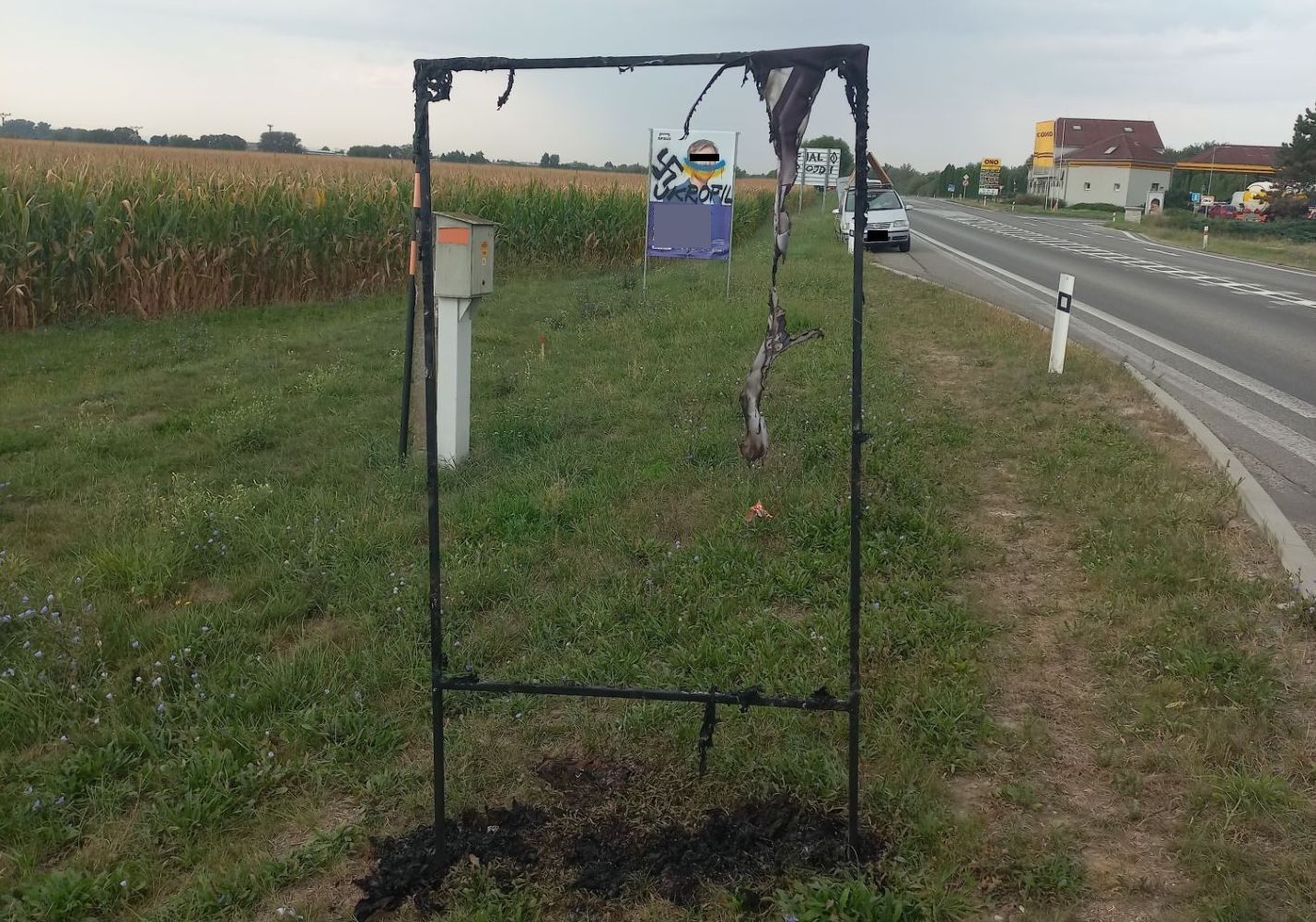 Bannery jsou poškozeny barevným sprejem a jeden z nich někdo zapálil a zůstala z něj pouze konstrukce,“ informovala policejní mluvčí Monika Kozumplíková.