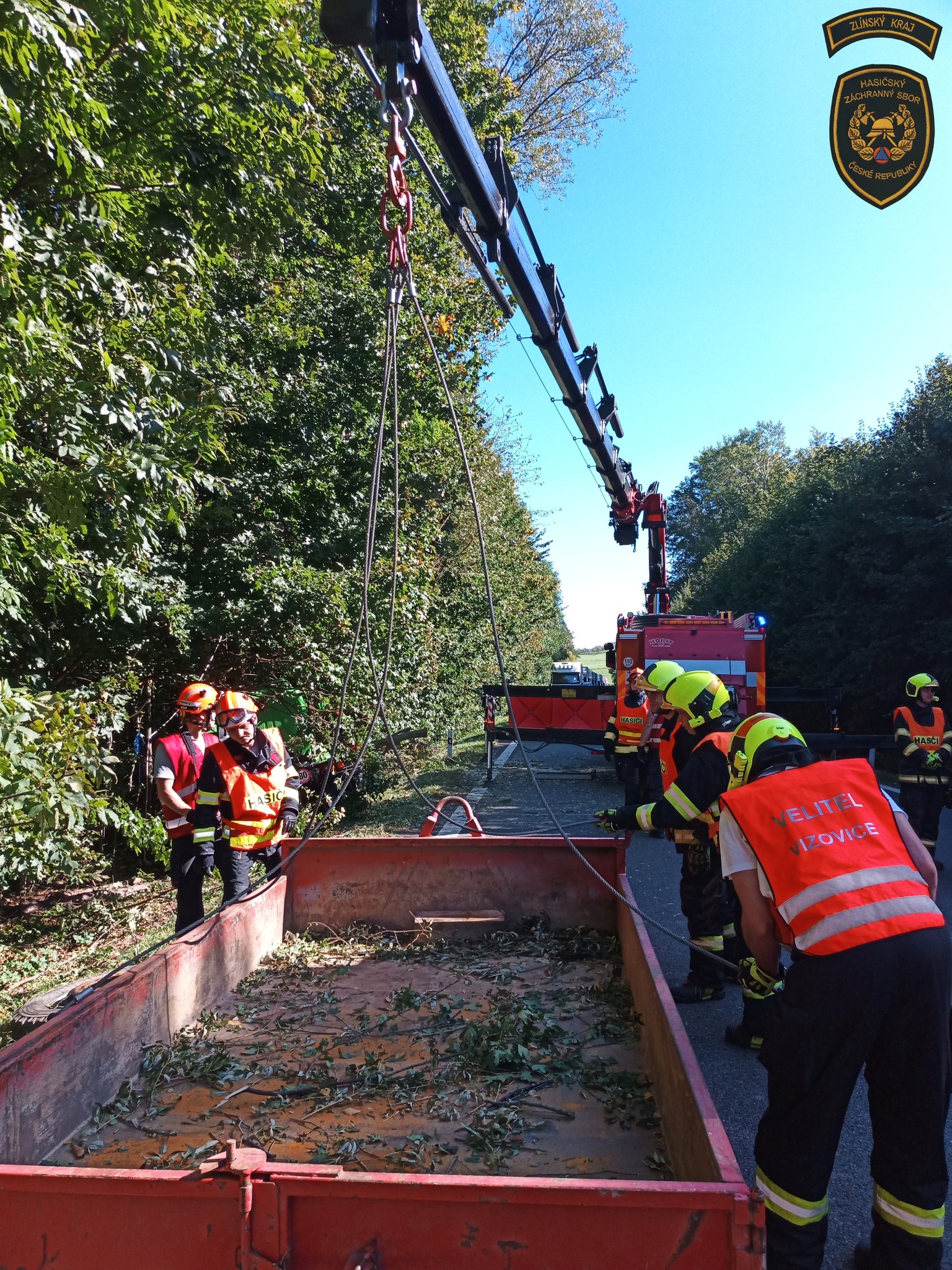„Velitel zásahu si na místo povolal vyprošťovací automobil, pomocí něhož vytáhli zaklíněný náklaďák zpět na cestu. V průběhu zásahu hasiči odstranili i poškozené stromy,“ pokračovala mluvčí hasičů Lucie Javoříková s tím, že jeden ze stromů se dokonce zlomil a spadl přes oba jízdní pruhy.