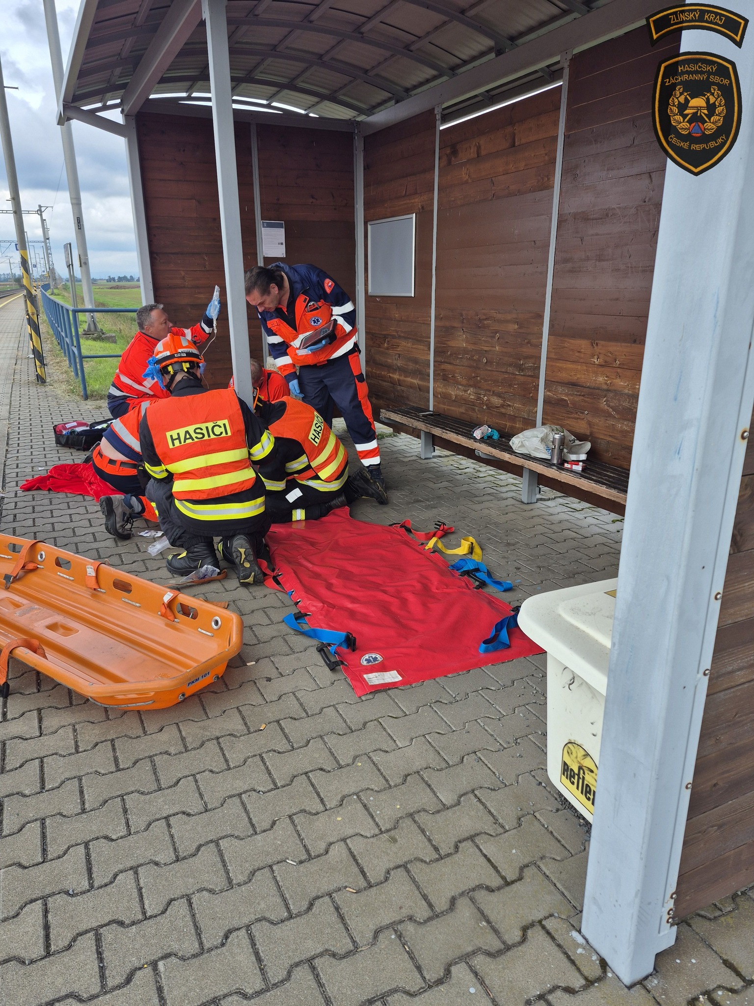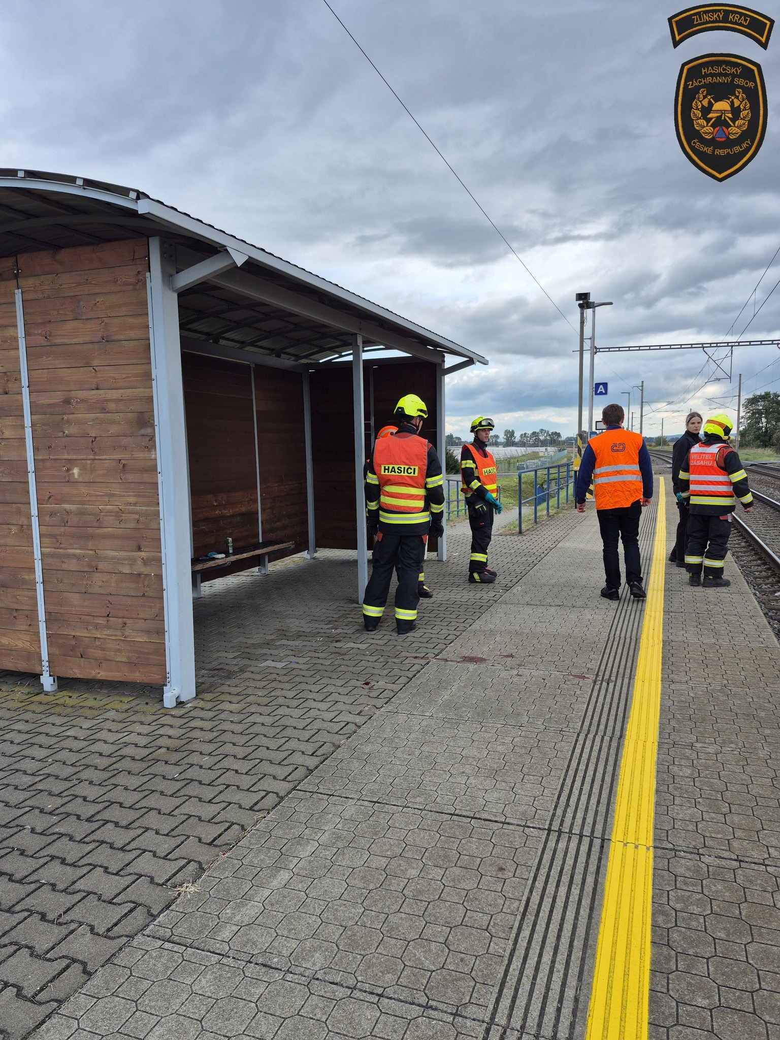 O půl hodiny později byly všechny složky IZS vyslány na železniční stanici u obce Břest na Kroměřížsku, kde vlak srazil člověka. První pomoc poskytli zraněnému policisté, následně si jej do péče převzali záchranáři.