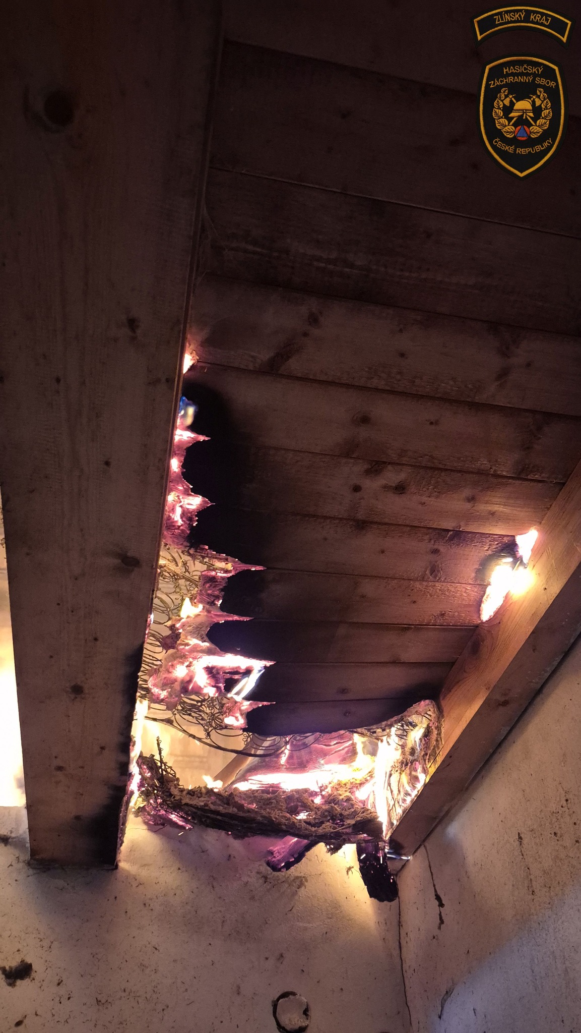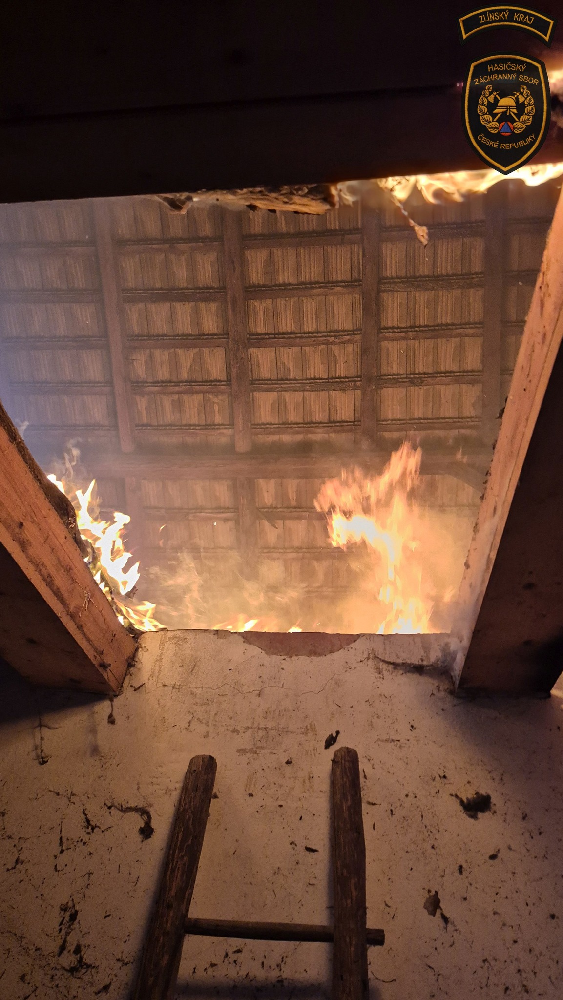 „Požár vznikl v horním patře. Hasební práce na místě probíhaly pomocí dvou proudů vody,“ informoval mluvčí Hasičského záchranného sboru Zlínského kraje David Martinec.
