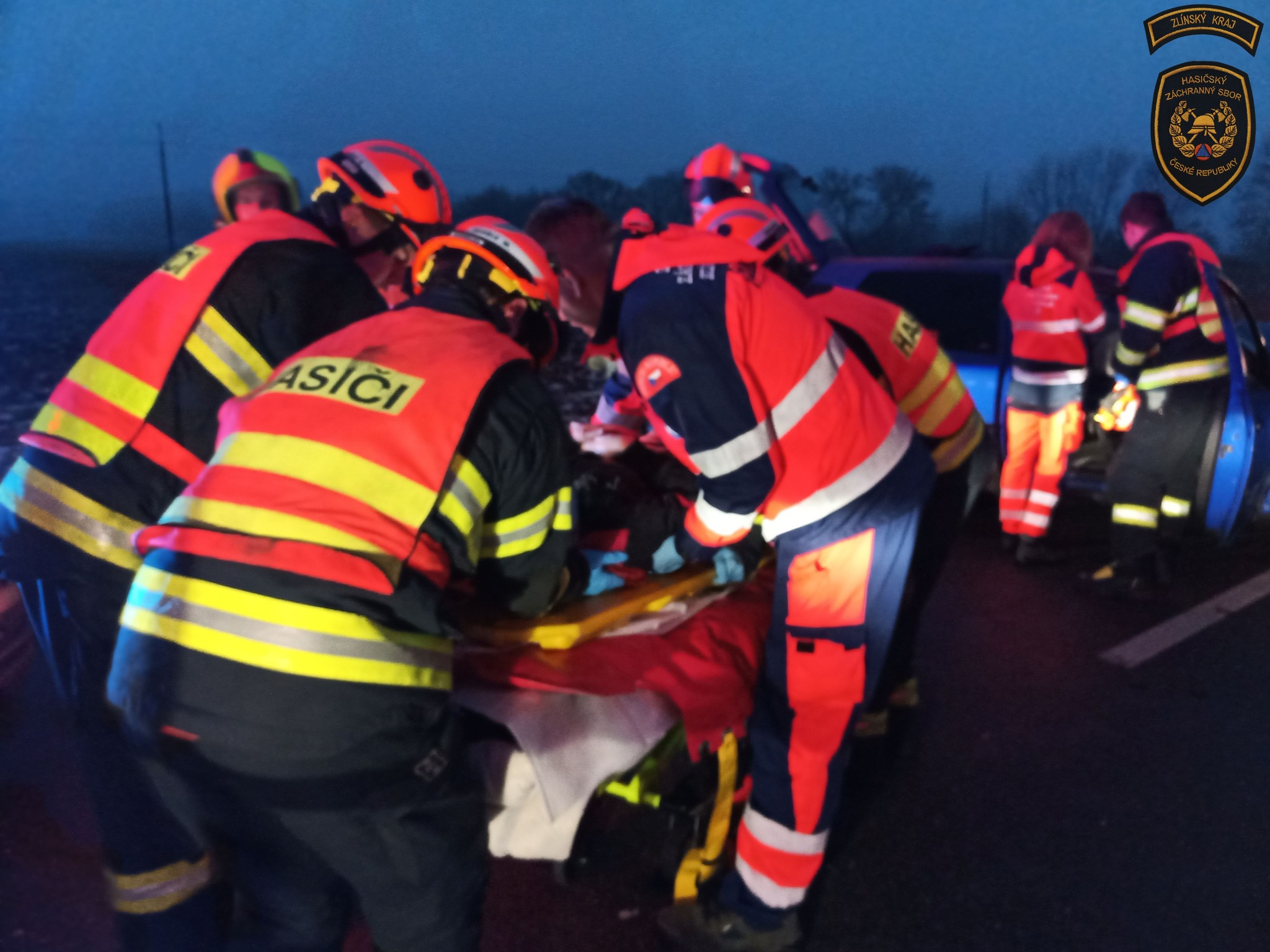 Řidička osobního automobilu zůstala po nehodě ve vozidle zaklíněna. Vyprostit ji museli hasiči ve spolupráci s posádkou zdravotnické záchranné služby.