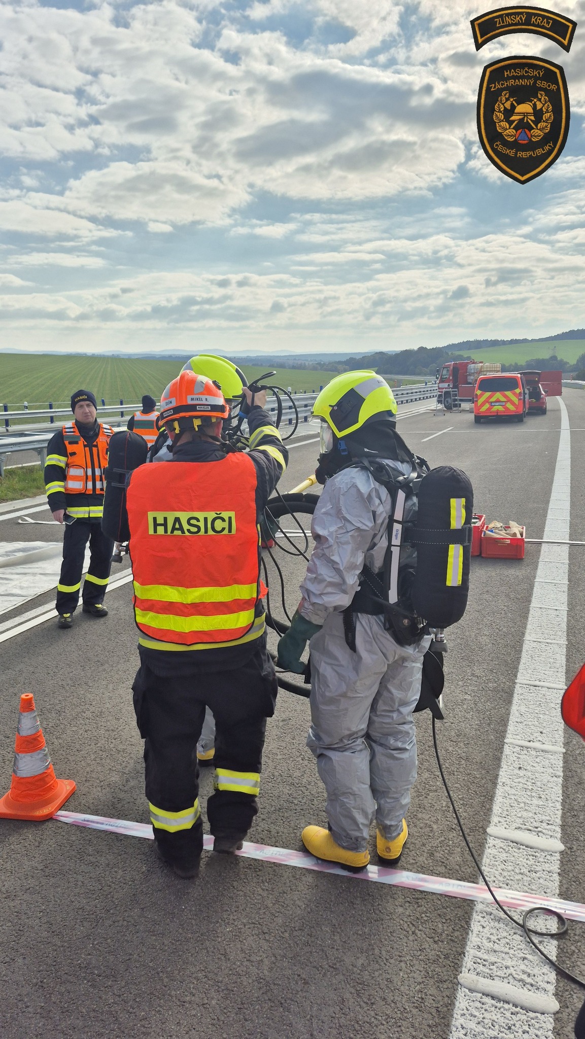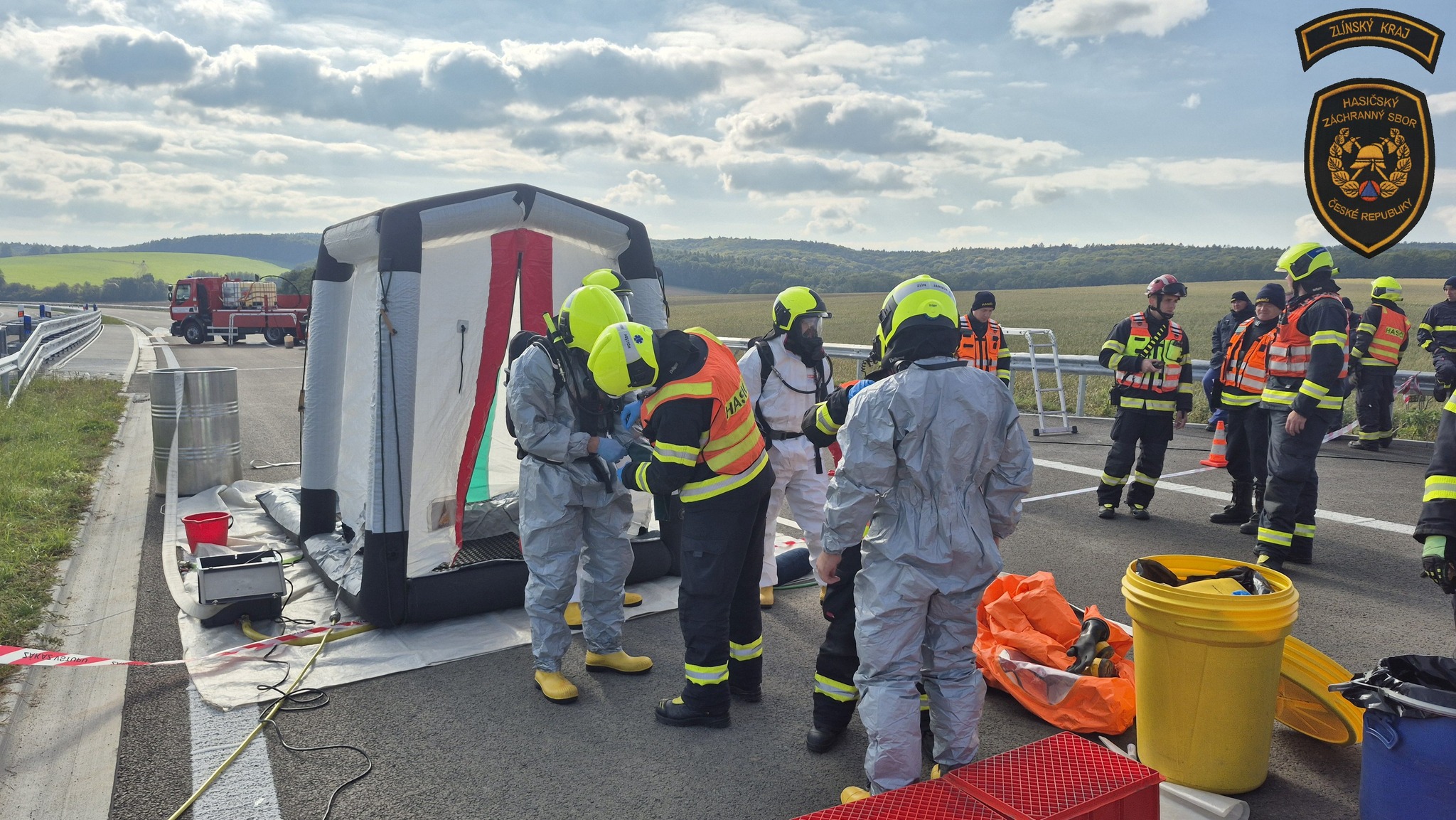 Cvičení se zúčastnili profesionální hasiči ze stanic Holešov, Kroměříž a Zlín, dálniční policie a posádky zdravotnické záchranné služby.