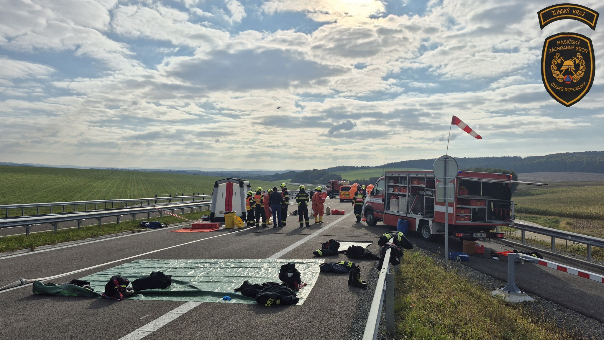 Dálnice D49 u Fryštáku posloužila jako místo nácviku mimořádné události