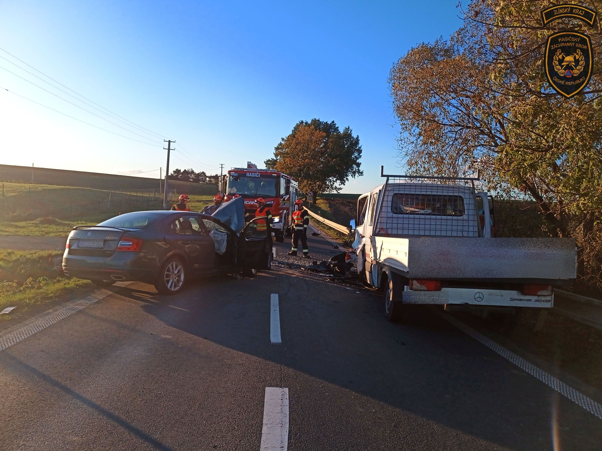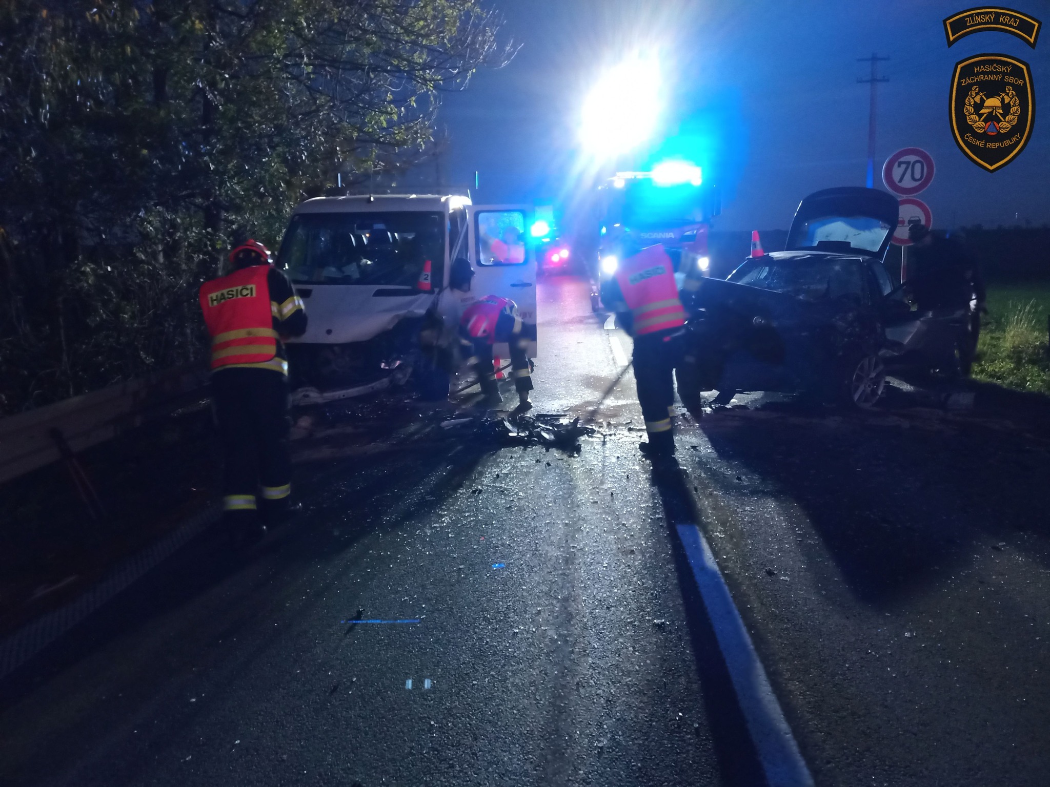 K dopravní nehodě byli vysláni profesionální hasiči ze stanic Holešov a Zlín a tři posádky zdravotnické záchranné služby. Na místě záchranáři ošetřili čtyři zraněné muže, po dvou z každého vozidla, ve věku od 27 do 37 let.