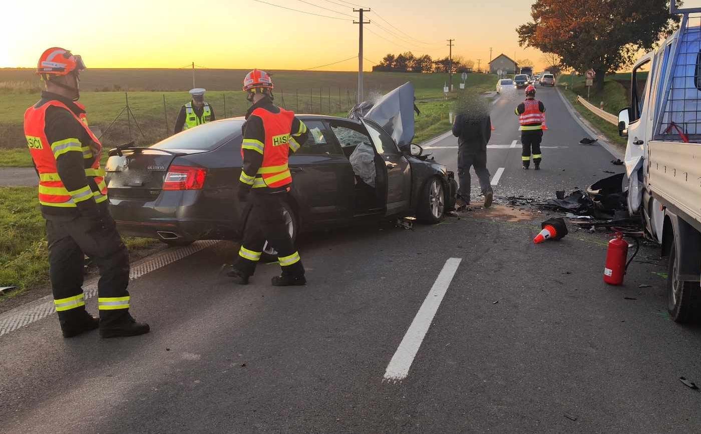 U Fryštáku se srazila dodávka s osobním autem. Na místě byli čtyři zranění, dva vážně