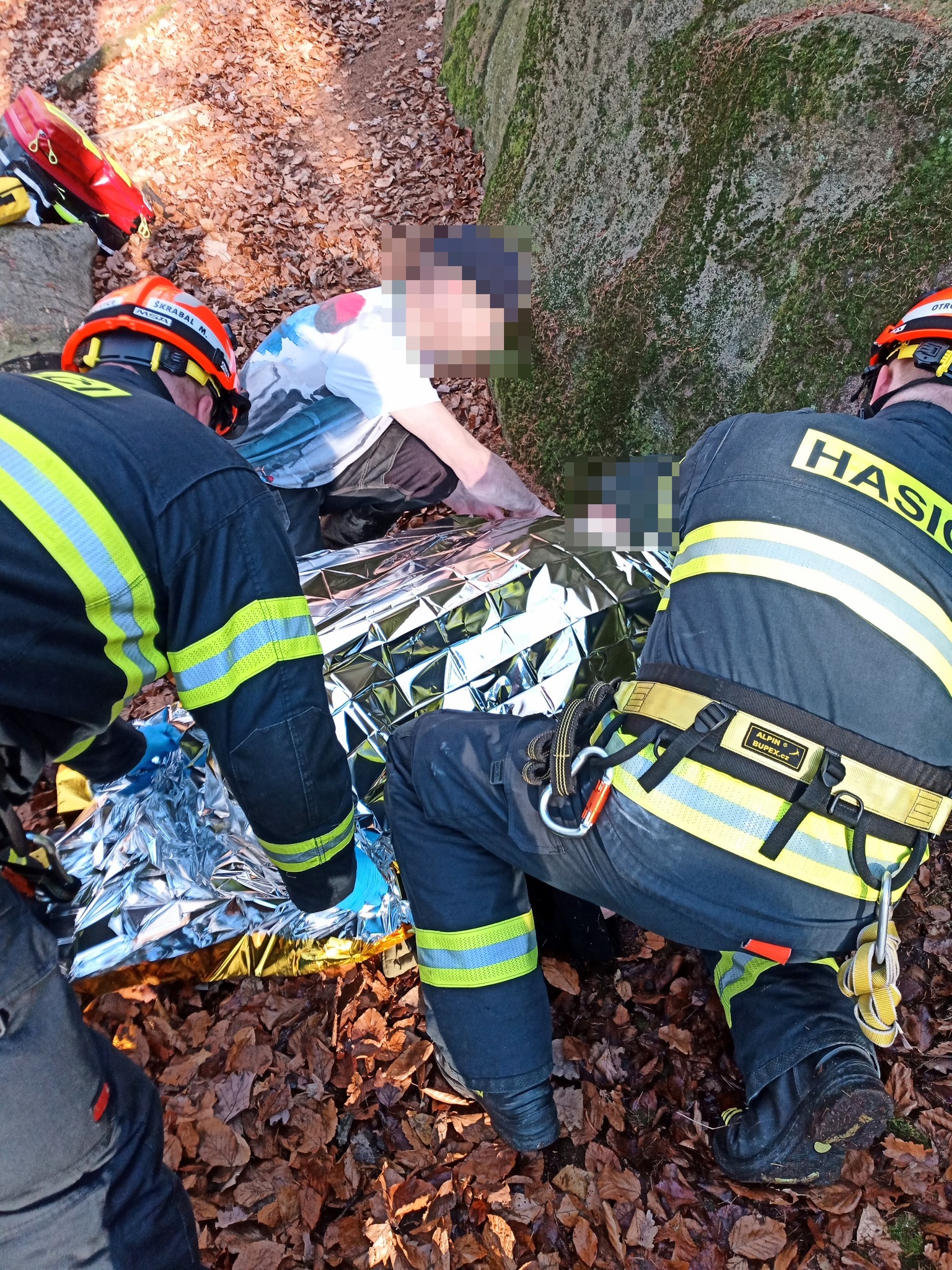 Podle zjištěných informací muž při procházce v lese uklouzl a zřítil se ze skály z výšky přibližně sedmi metrů.