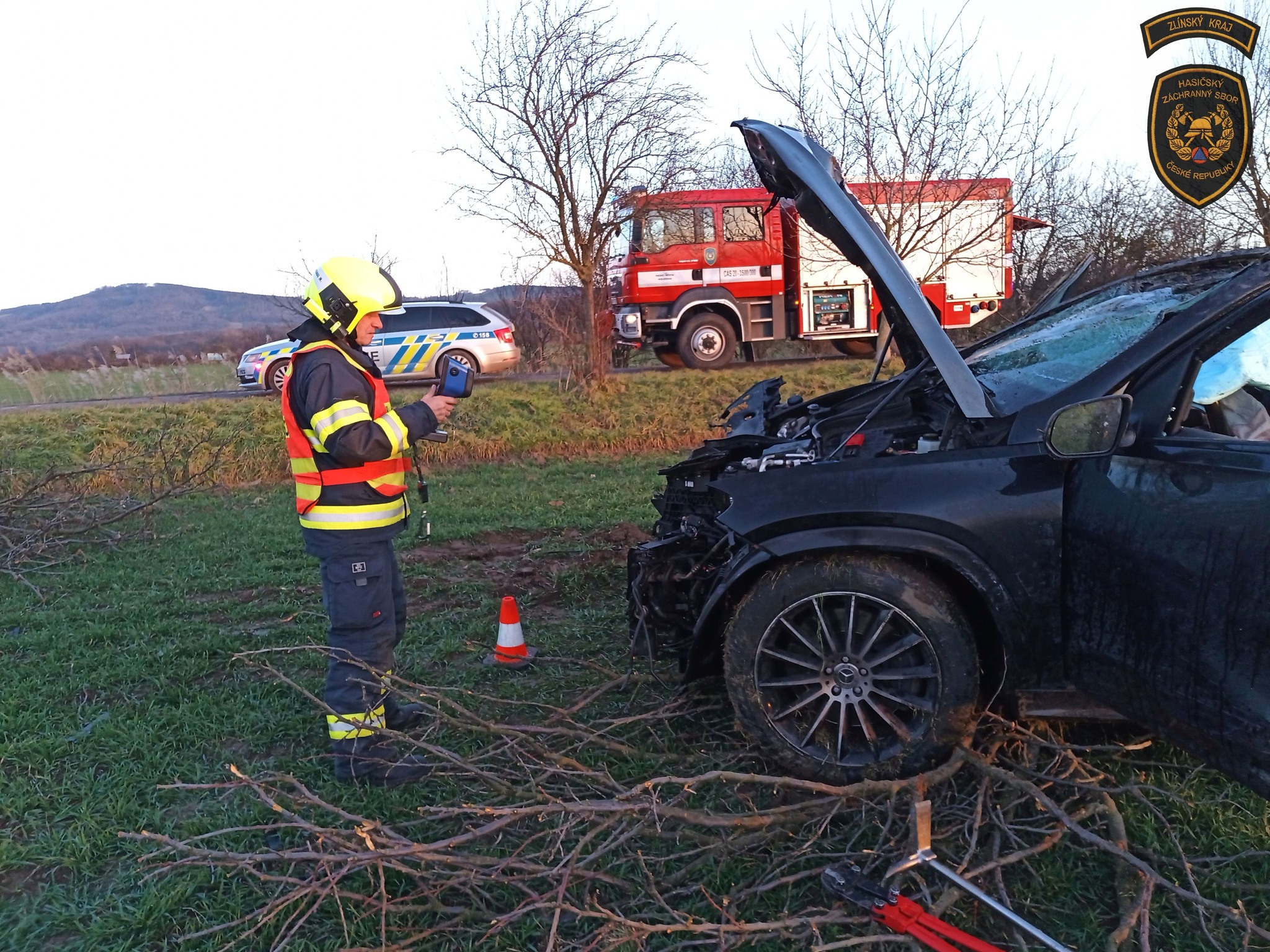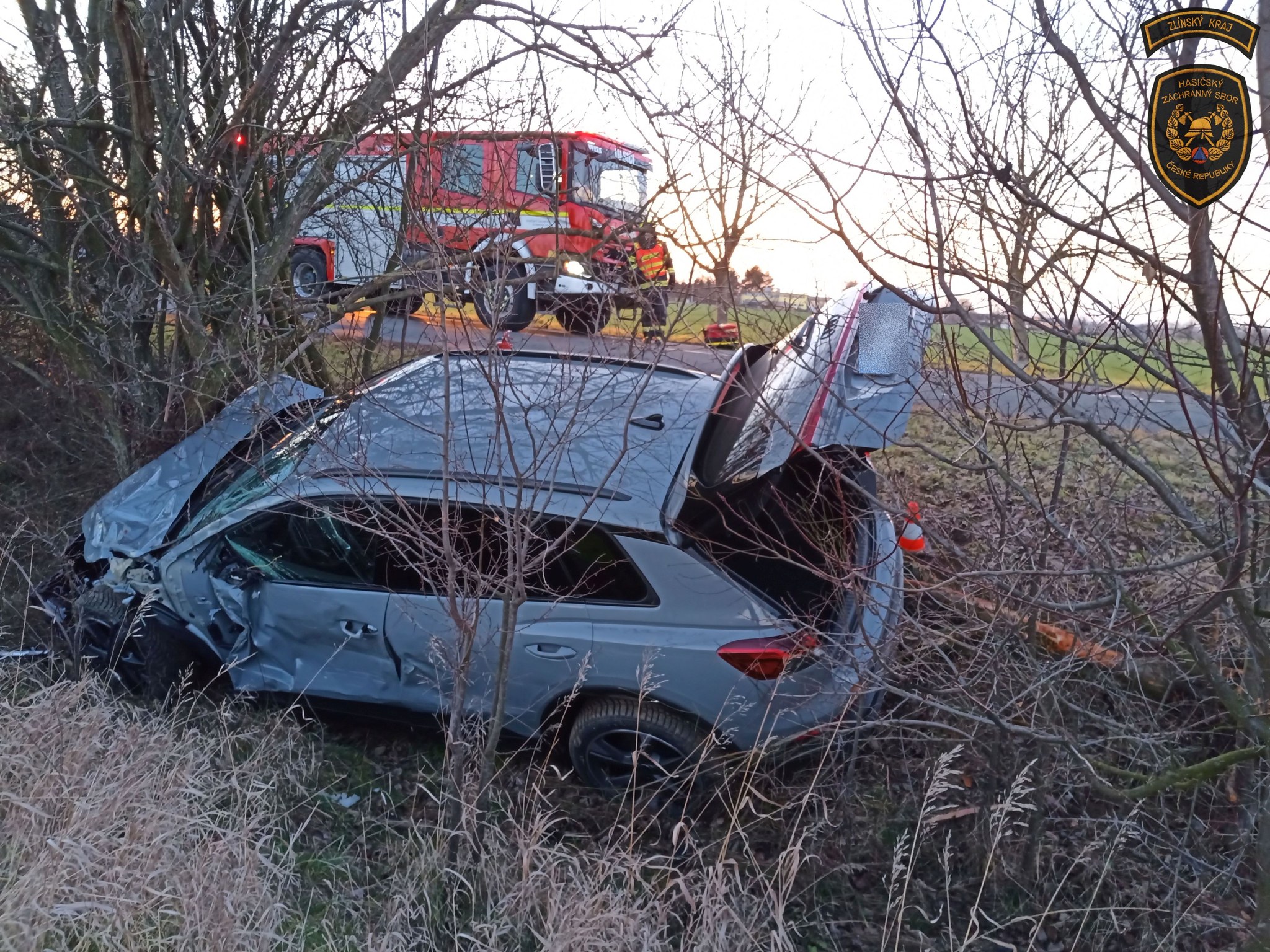 Na místo nehody byli vysláni profesionální a dobrovolní hasiče z Holešova.