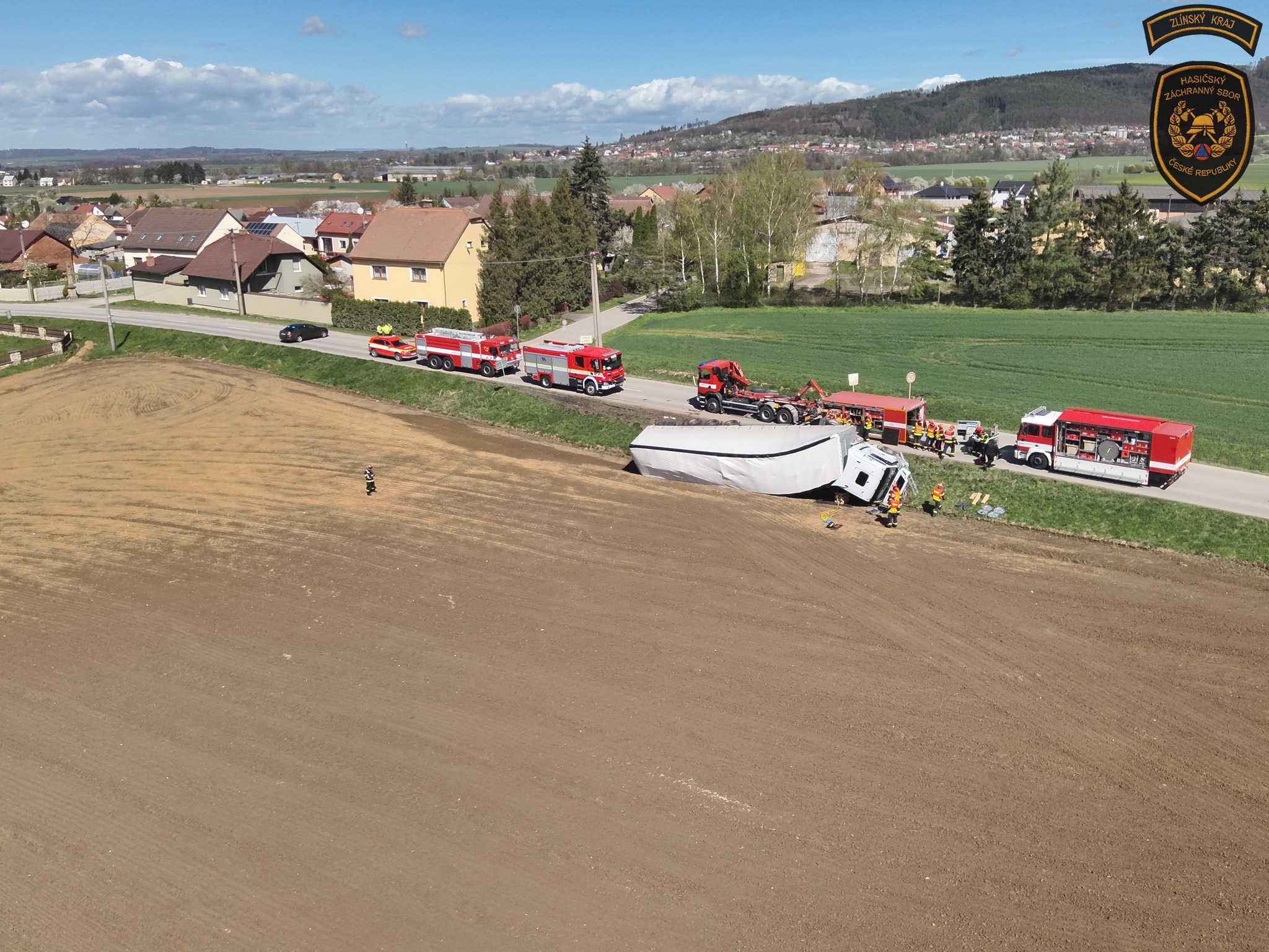 „Dále z kamionu odčerpali naftu do k tomu určených barelů a zamezili případnému úniku provozních kapalin do půdy,“ uvedla mluvčí krajských hasičů Lucie Javoříková.