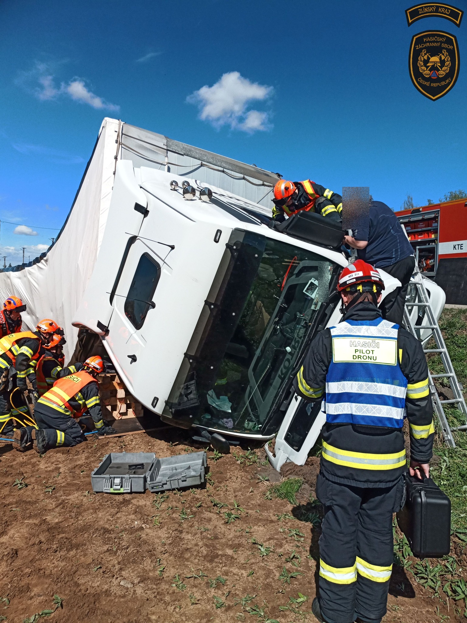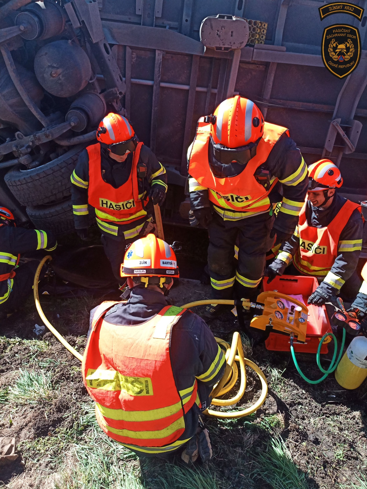Na místo nehody byly vyslány dva záchranářské týmy ze Zlína a hasiči z Holešova, kteří s pomocí nastavovacího žebříku pomohli řidiči ven z kabiny vozu. Poté se muže ujala posádka zdravotnické záchranné služby, která jej v rámci přednemocniční neodkladné péče vyšetřila v ambulantním prostoru sanitky.