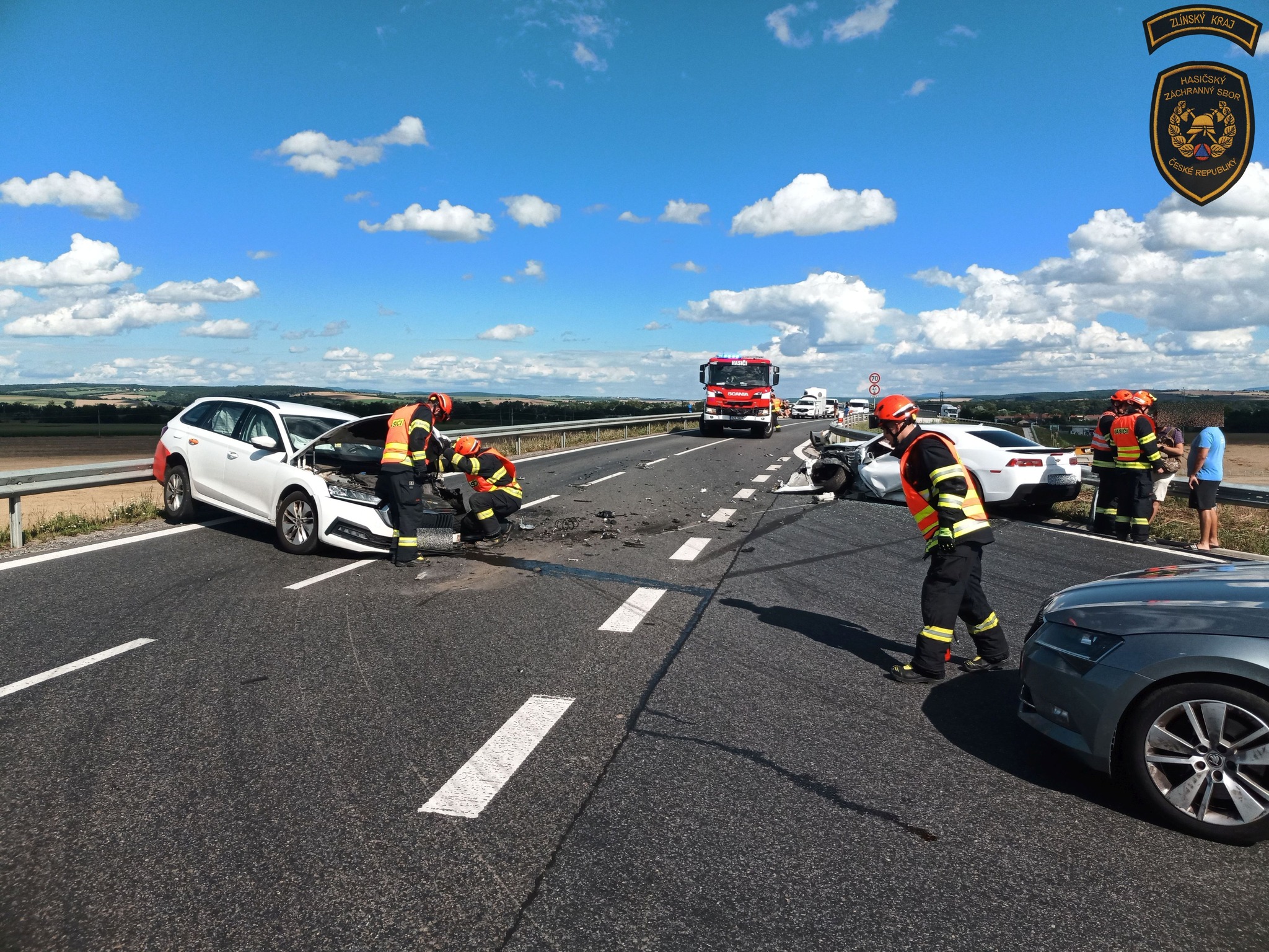 Krátce po čtvrté hodině zasahovaly složky IZS u nehody dvou osobních automobilů, ke které došlo u nájezdu na dálnici nedaleko Kudlovic.