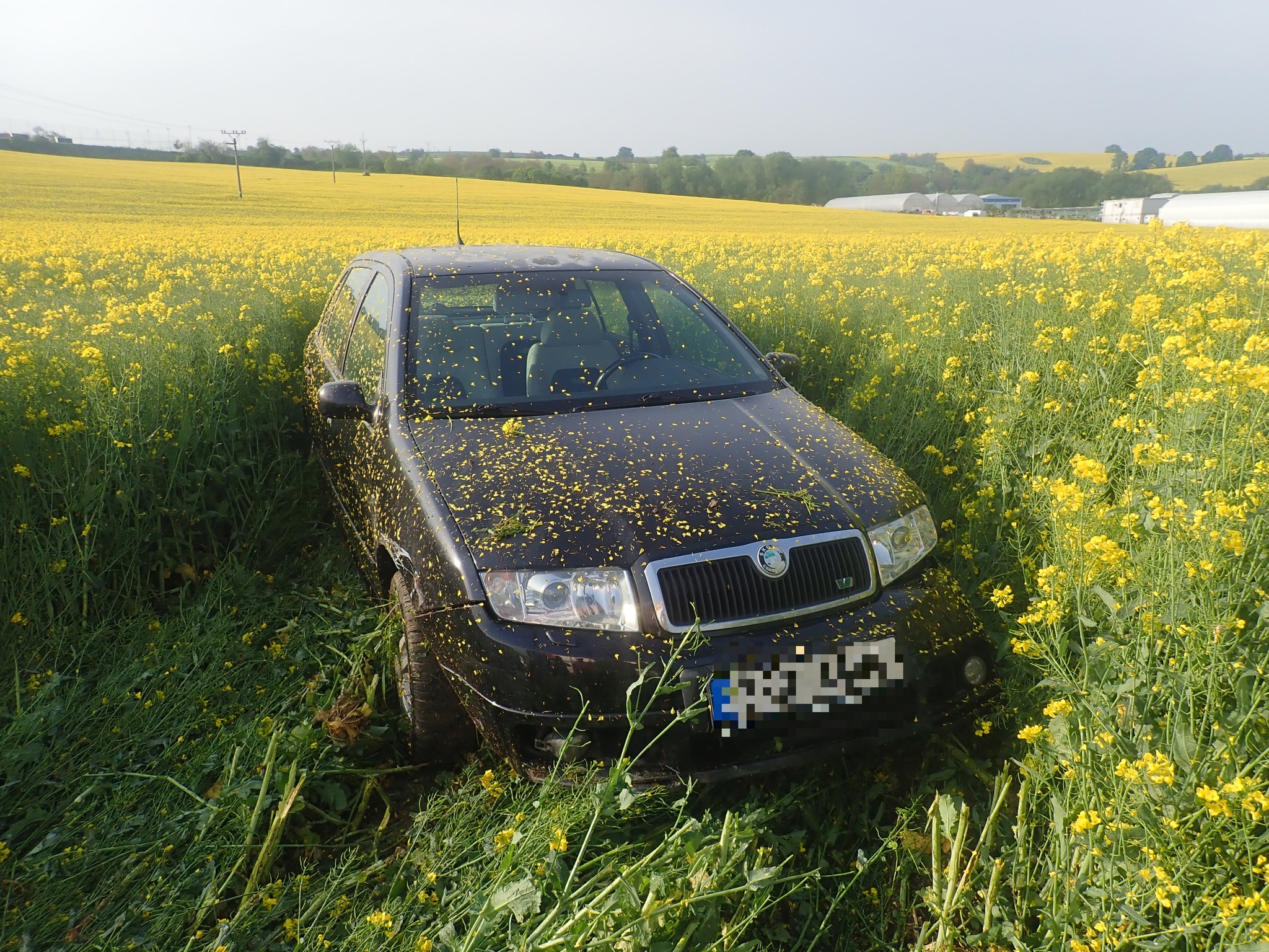 K dopravní nehodě došlo dnes ráno krátce před půl osmou u obce Kněžpole, kde sjel mladý řidič do pole s řepkou. Jeho vozidlo Škoda Fabia tak skončilo jako reklama na květinářství.