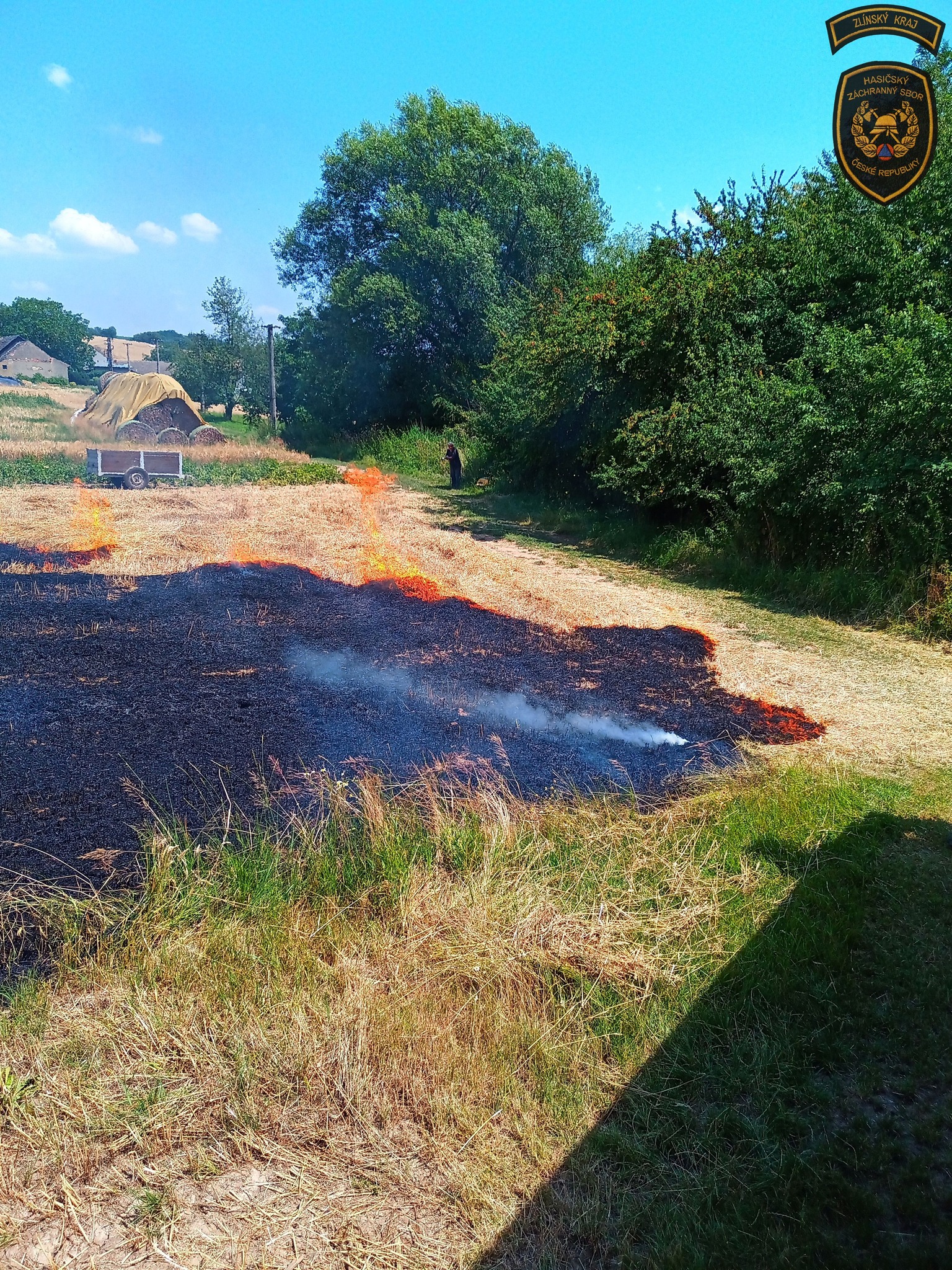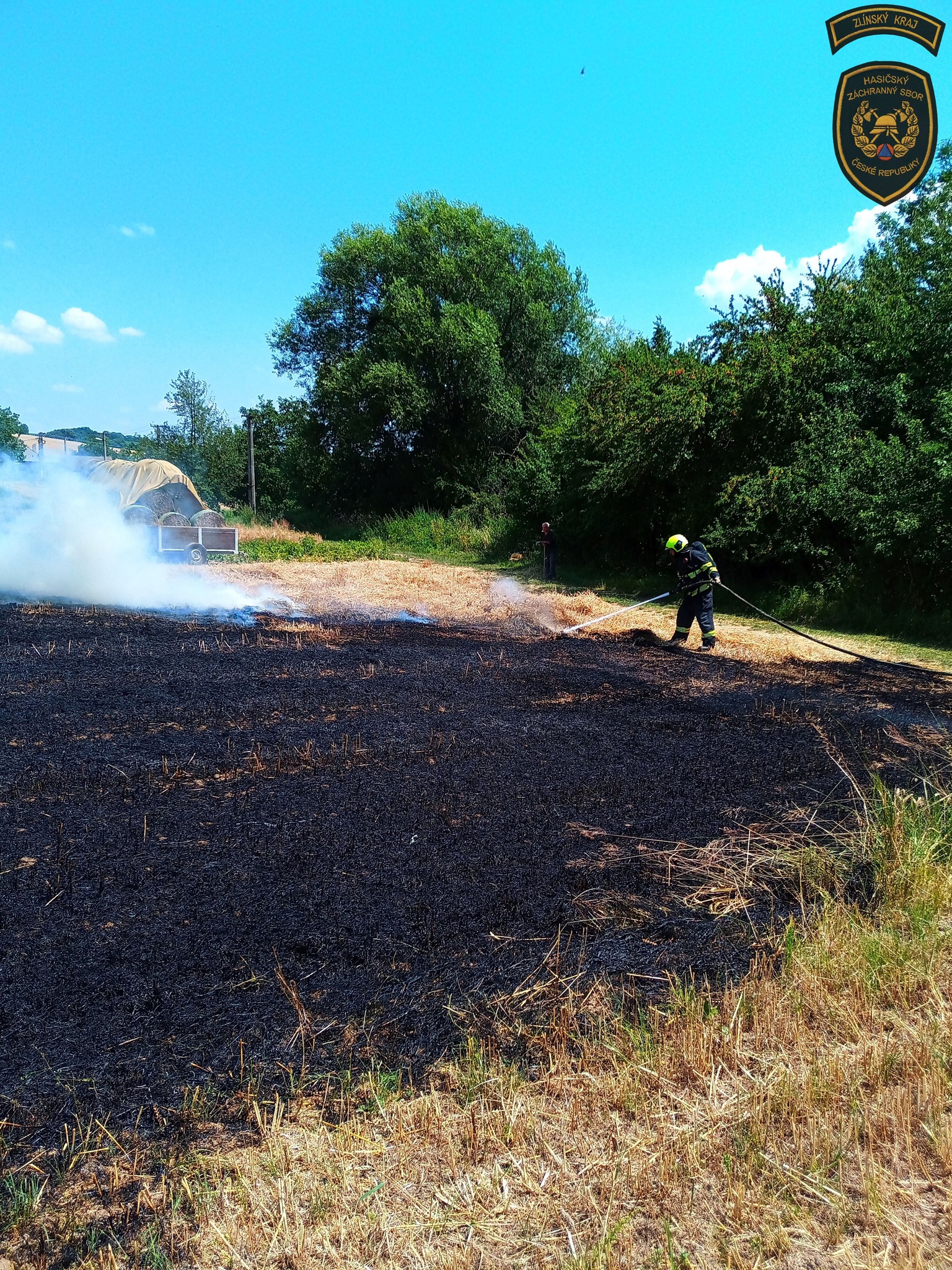 Jednotky na místě prováděly hašení a starosta Hoštic zajistil z nedalekého zemědělského družstva traktor, který prováděl zaorávání nejdříve okolí a poté i samotného požářiště, aby se oheň dále nešířil,“ informoval mluvčí krajských hasičů David Martinec.