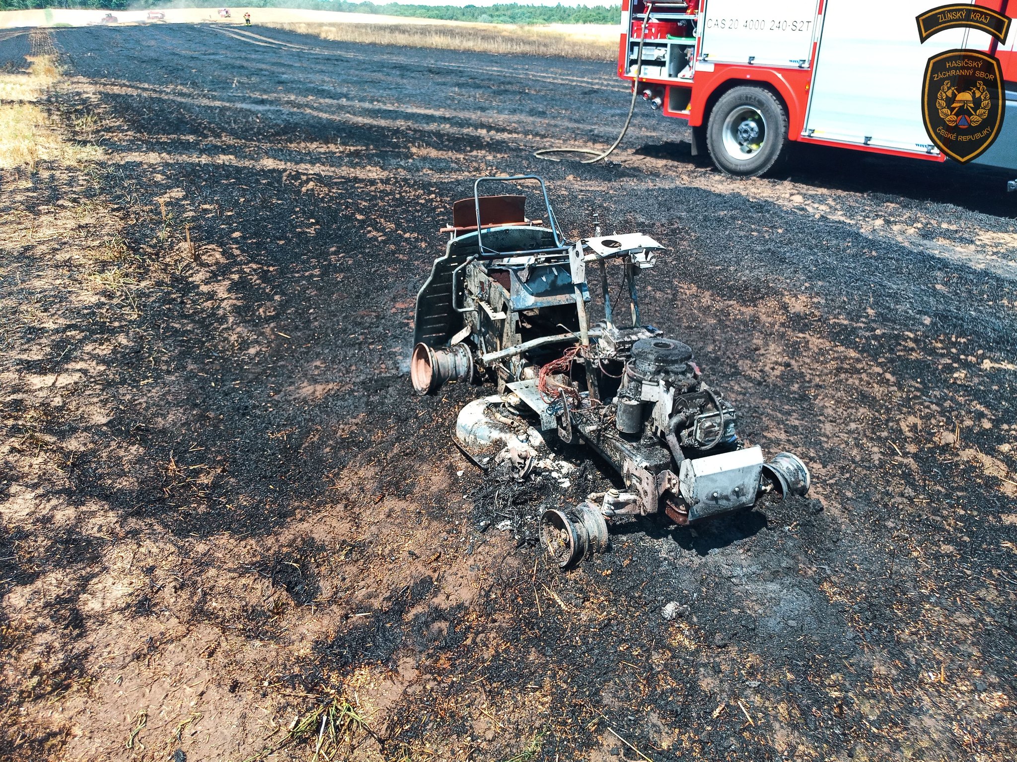 V Hošticích hořelo pole. Mohl za to zahradní traktor
