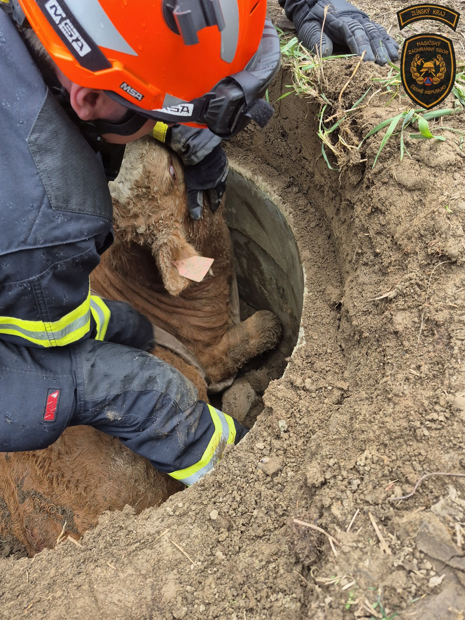 „Po příjezdu hasiči zjistili, že se zvíře nachází v hloubce okolo metru a půl a bez cizí pomoci není schopno dostat se ven,“ informovala mluvčí Hasičského záchranného sboru Zlínského kraje Lucie Javoříková.