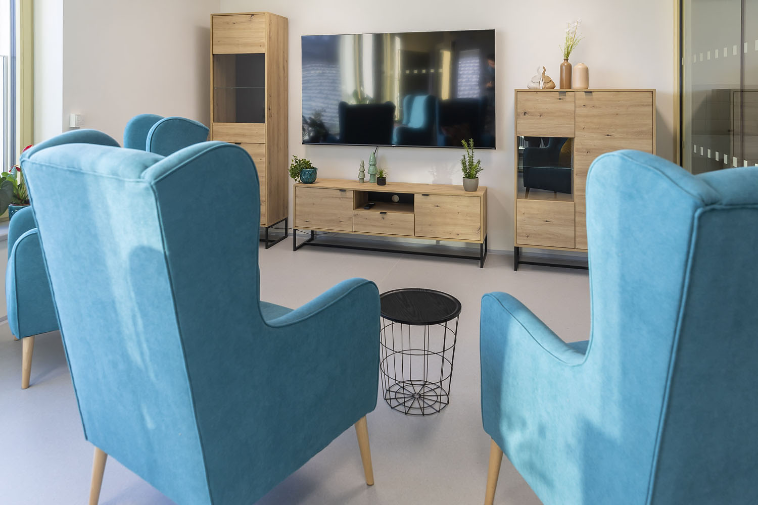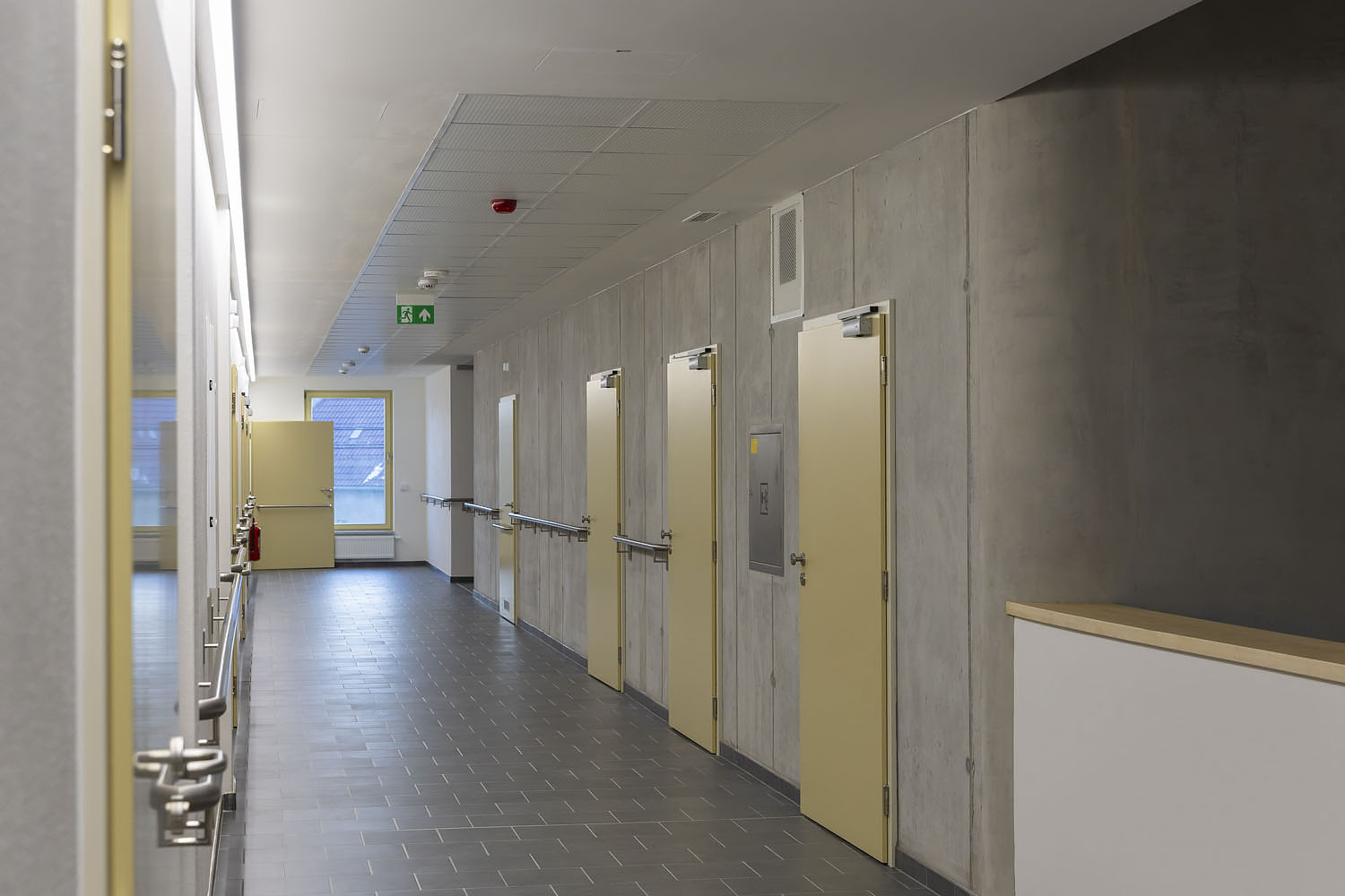 Nový objekt nabízí 40 jednolůžkových a 9 dvoulůžkových pokojů o velikosti odpovídající prostorům pro těžce pohybově postižené. Centrální koupelny jsou uzpůsobeny k provádění hygieny na sprchovacím lehátku nebo křesle.