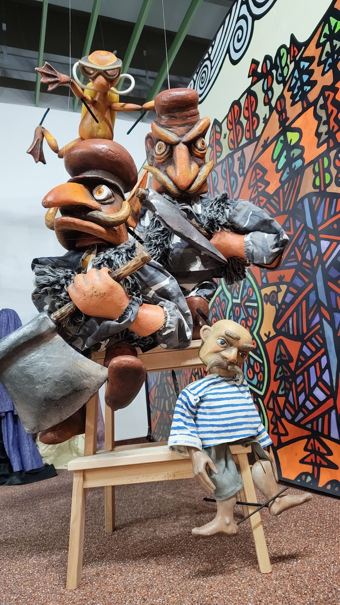 Velmi cenný je například soubor loutek ze spolkových divadel, který zapůjčili po výstavu sběratelé Marie a Pavel Jiráskovi. Reprezentativní soubor současných autorských loutek výtvarníka a loutkáře Tomáše Volkmera poskytlo Divadlo loutek Ostrava.