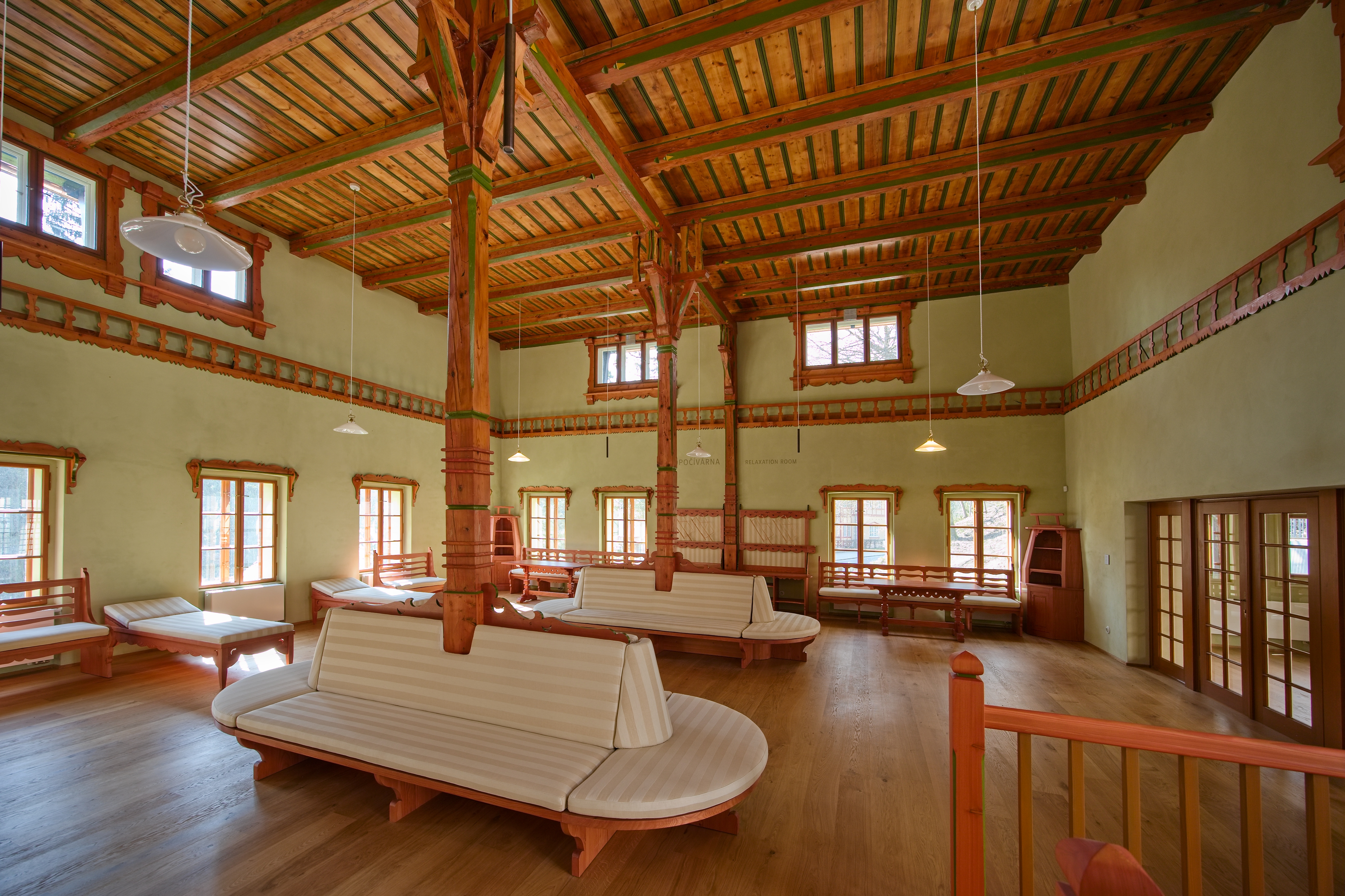 „Dominantou hlavní prohlídkové trasy je hodnotně zrestaurovaná Jurkovičova Odpočívárna vybavená replikami původního mobiliáře z roku 1902. Nechybí artefakty z původního mlýna, na jehož místě byl Vodoléčebný ústav vystavěn, ani autentický model znázorňující podobu areálu z roku 1910,“ přiblížila ředitelka Slunečních lázní Hana Felcmanová.