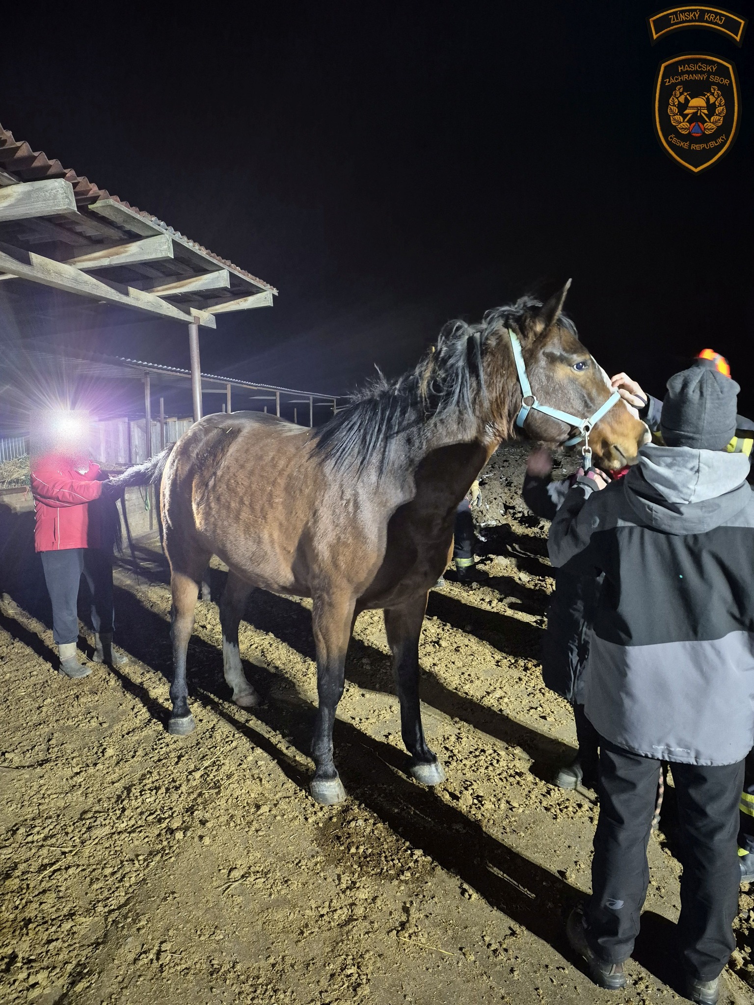 K záchraně koně vyjeli profesionální hasiči ze Zlína a Otrokovic a dobrovolné jednotky hasičů z Nové Dědiny a Kvasic.