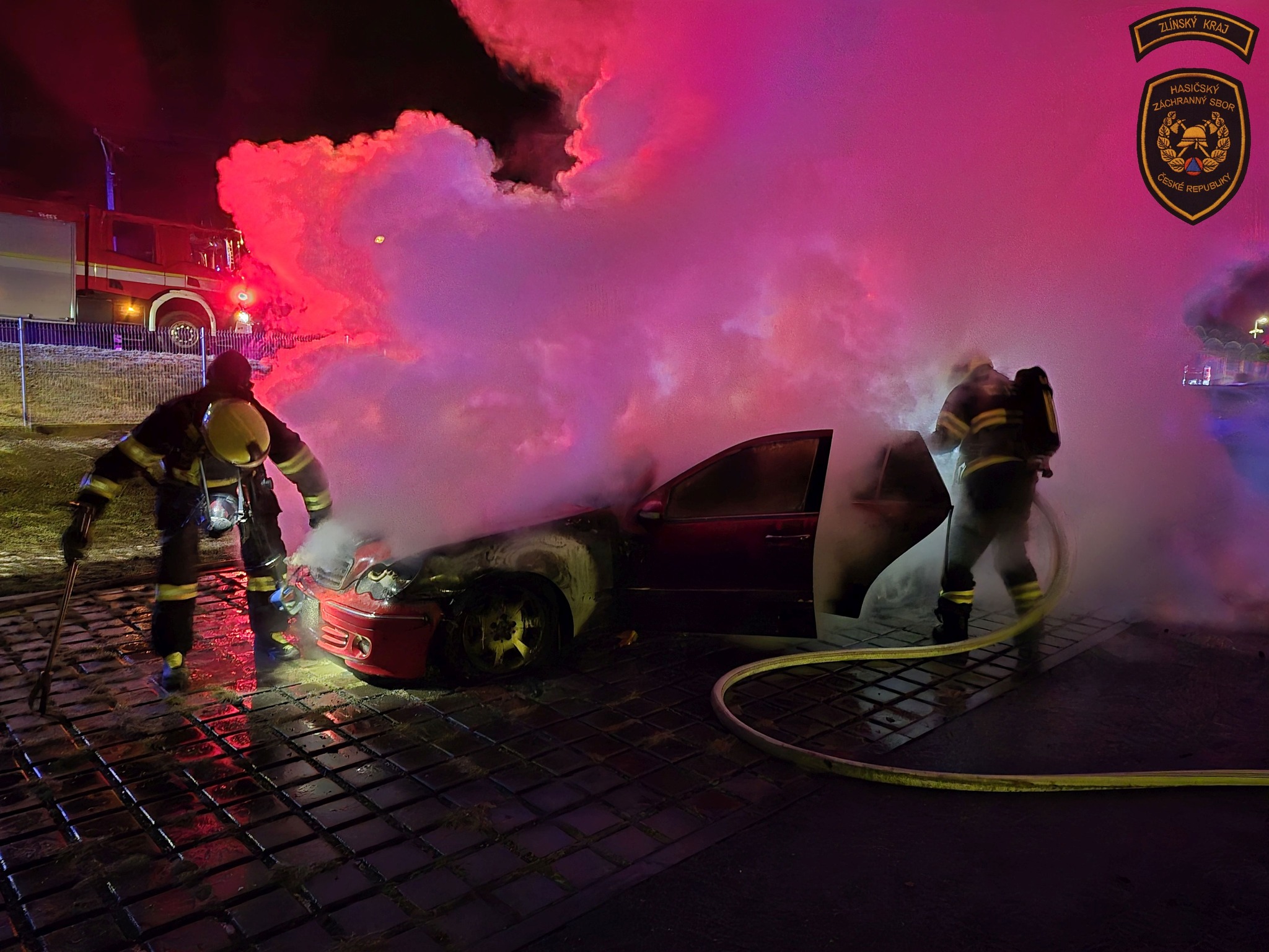 K požáru vyjížděli hasiči několik minut před šestou hodinou ranní. Řidiči chtěl původně auto jen odstavit na parkoviště, když vtom začalo hořet.