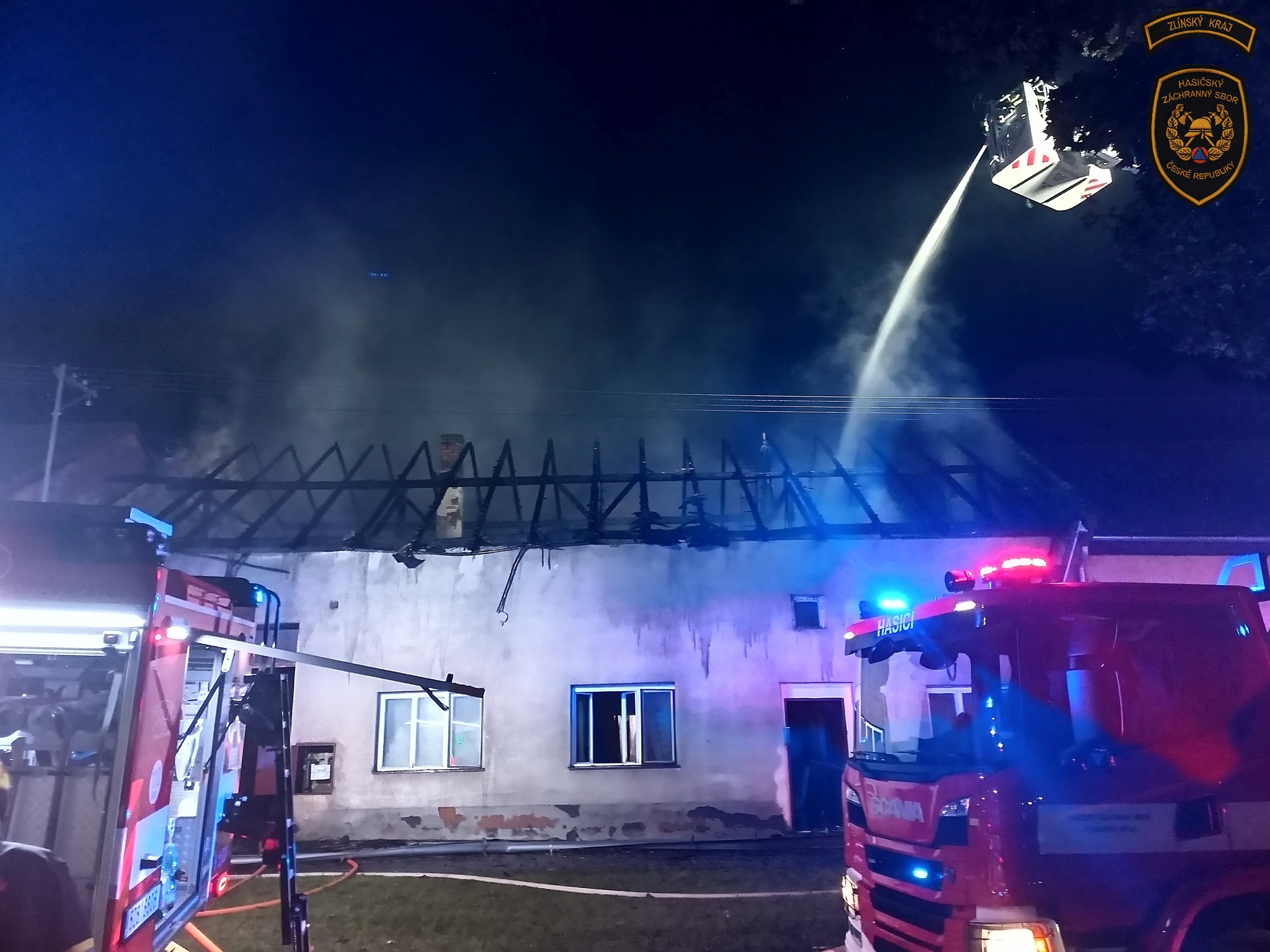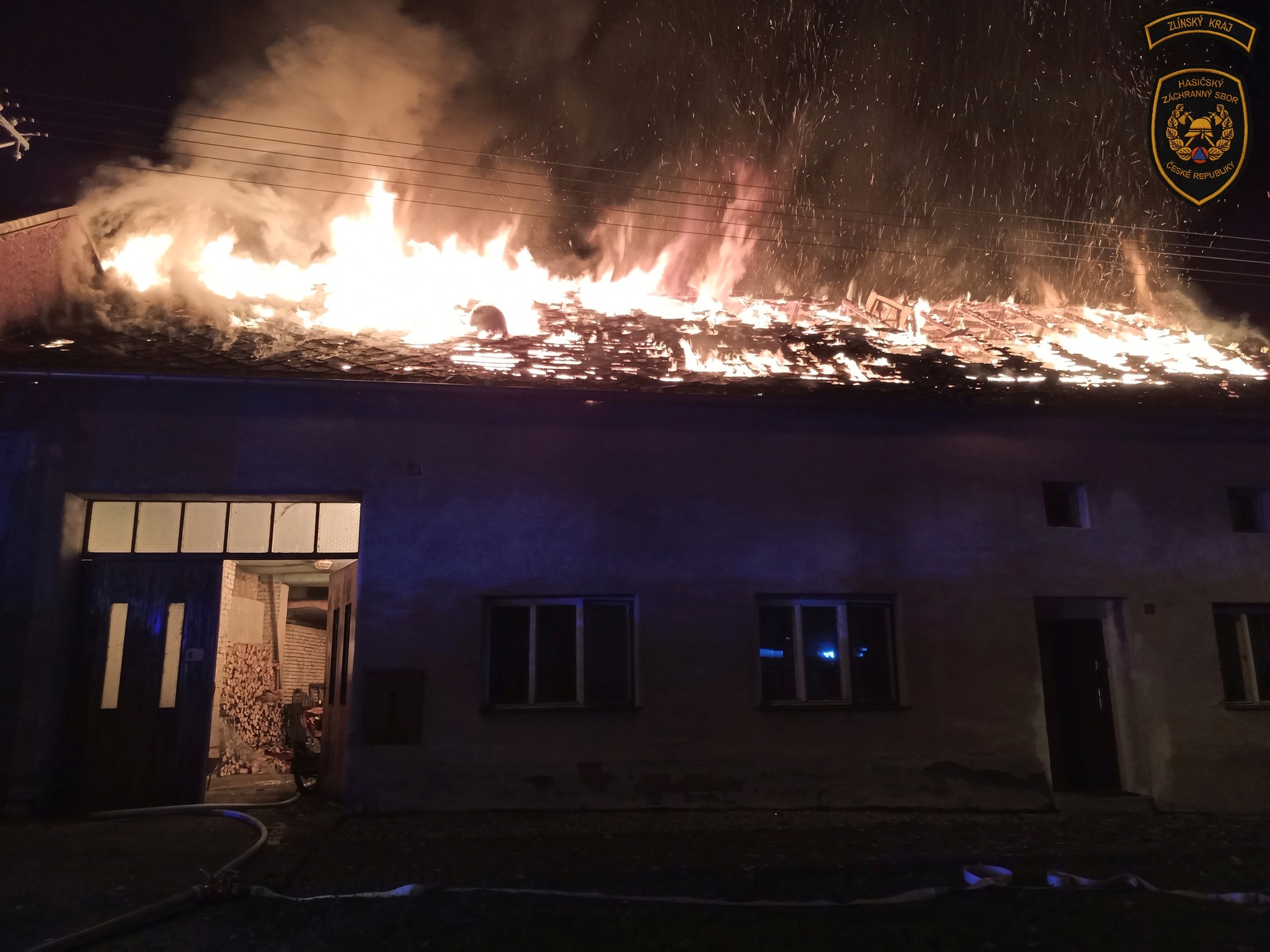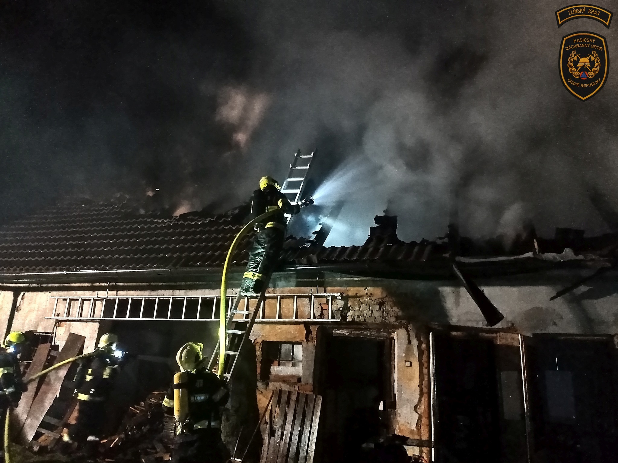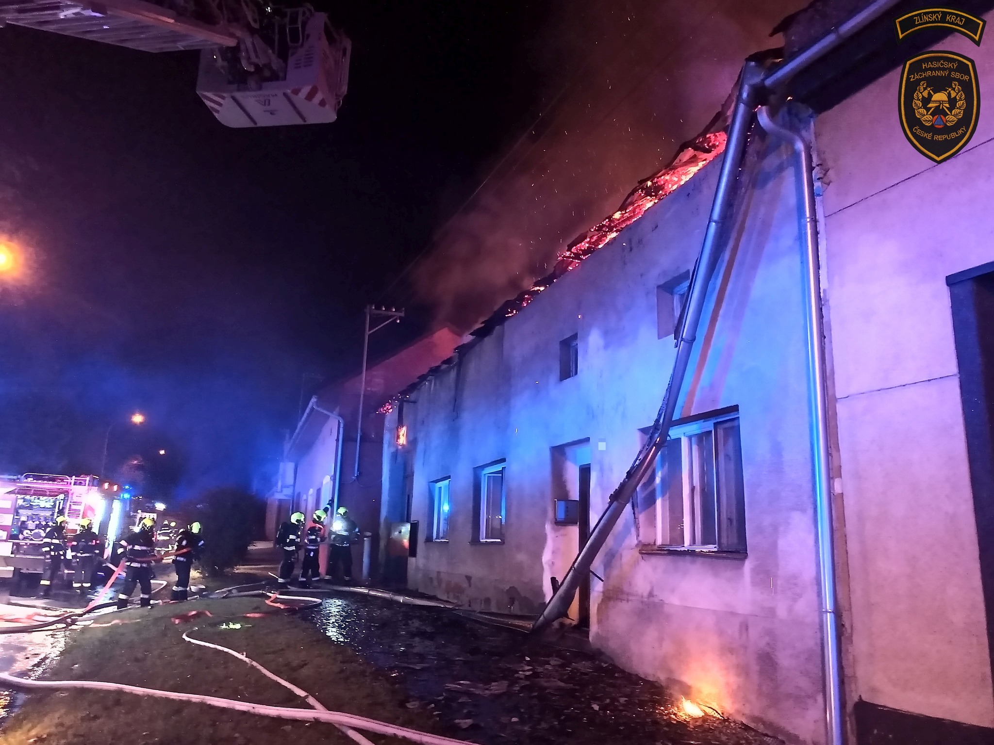 Deset hasičských jednotek zaměstnal noční rozsáhlý požár střechy rodinného domu v Otrokovicích-Kvítkovicích. Hasiči evakuovali obyvatele z přilehlých objektů a vyhlásili druhý stupeň požárního poplachu.