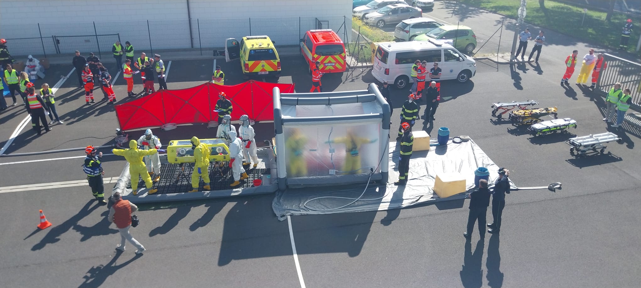 V areálu výjezdové základny záchranné služby v Otrokovicích se v tomto týdnu konalo mimořádné taktické cvičení biohazard týmů. Složky integrovaného záchranného systému nejen ze Zlínského kraje simulovaly záchranu osob s podezřením na vysoce nebezpečnou nemoc.