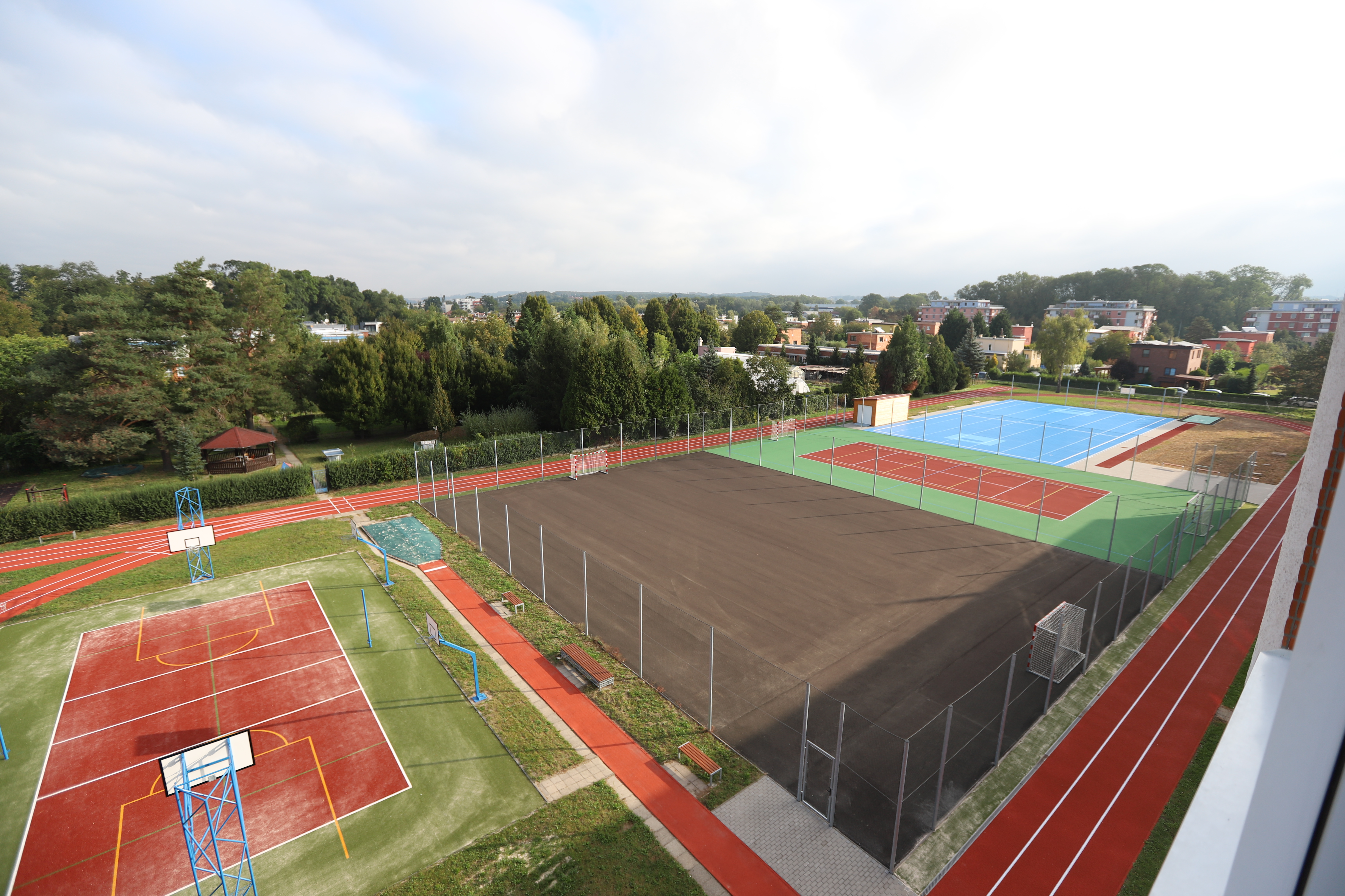 Zrekonstruovaný areál nabízí ideální zázemí pro míčové sporty, florbal, basketbal, atletiku i školní společenské akce. Navíc je až do pozdního odpoledne otevřen i široké veřejnosti. Stavební práce byly rozděleny do dvou etap.