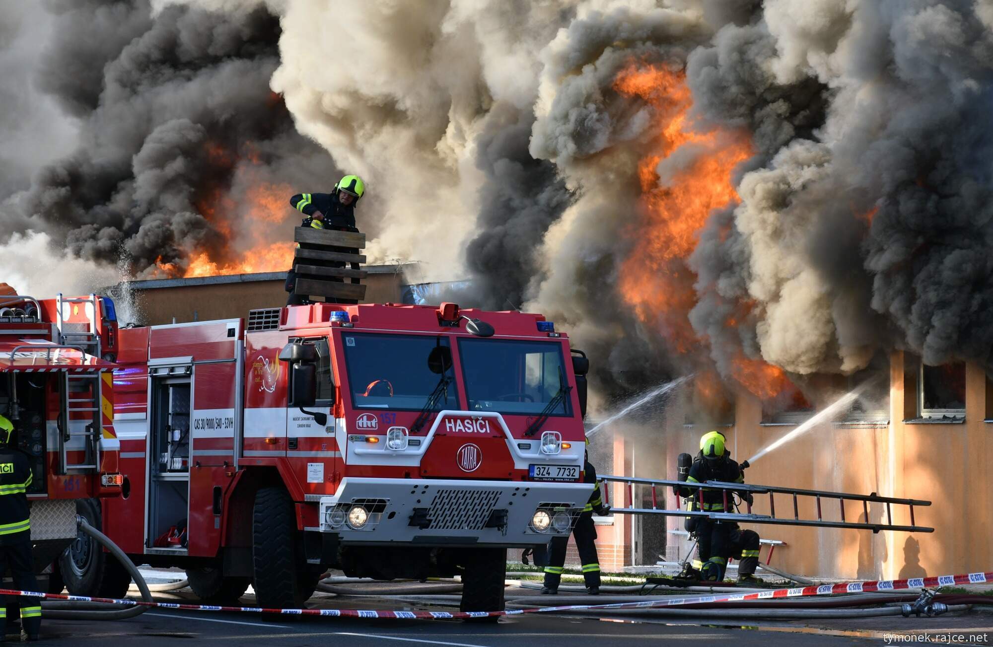 U rozsáhlého požáru, který začal ve středu o půl šesté ráno, zasahovalo v jednu chvíli 38 hasičských jednotek, 200 hasičů a 67 kusů hasičské techniky. Byl vyhlášen i zvláštní, tedy nejvyšší stupeň poplachu, který v odpoledních hodinách hasiči snížili na třetí stupeň.