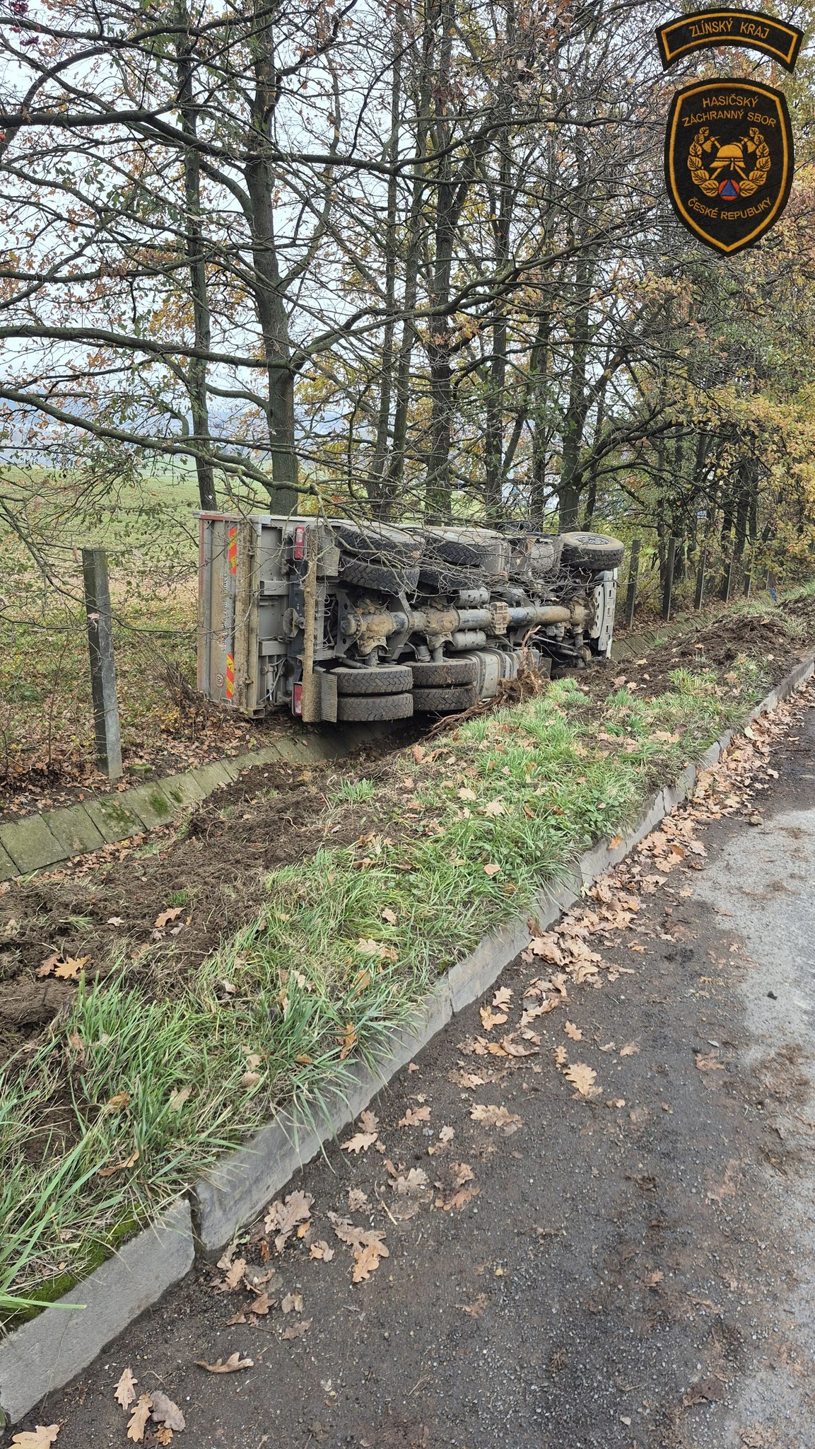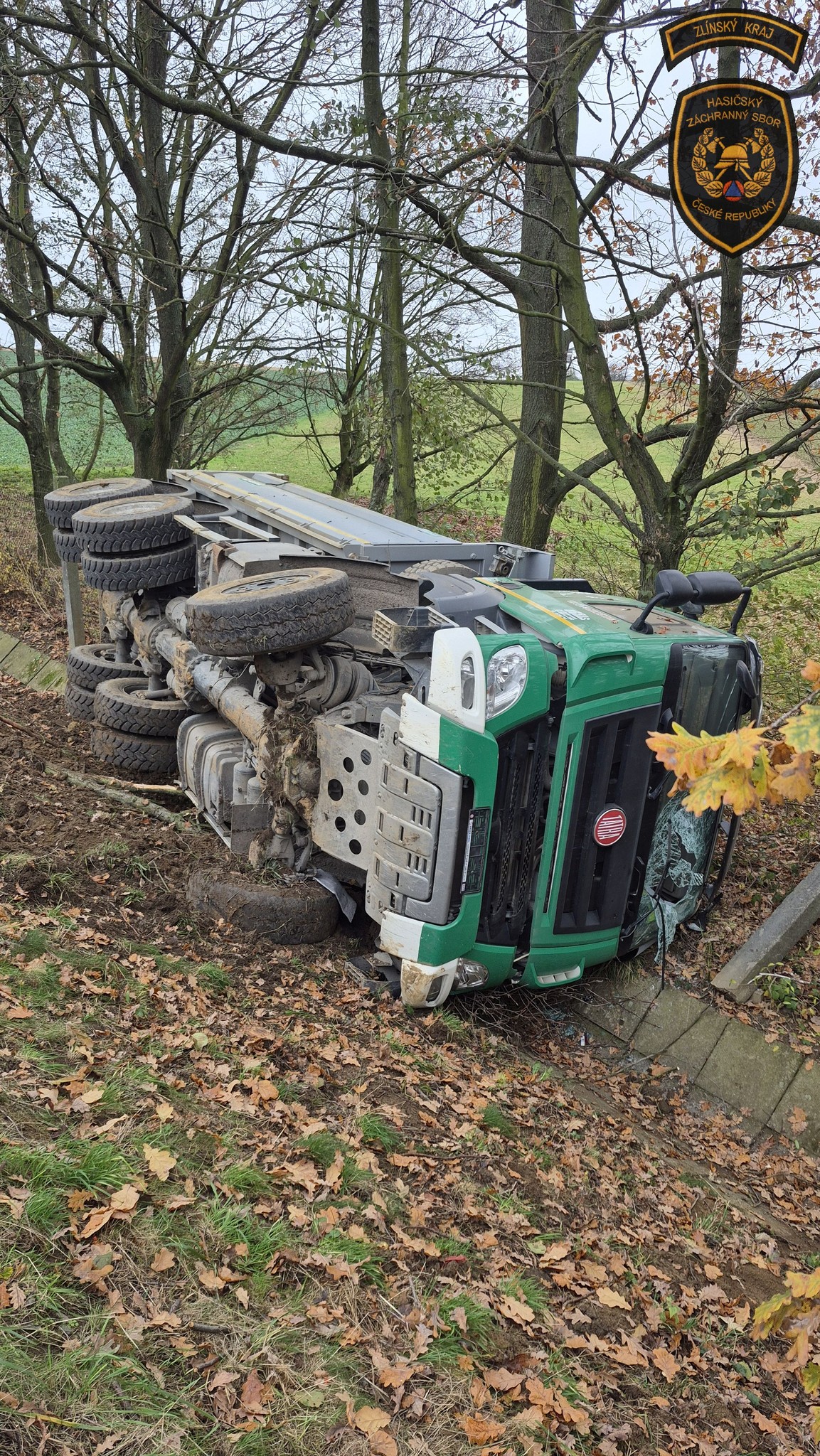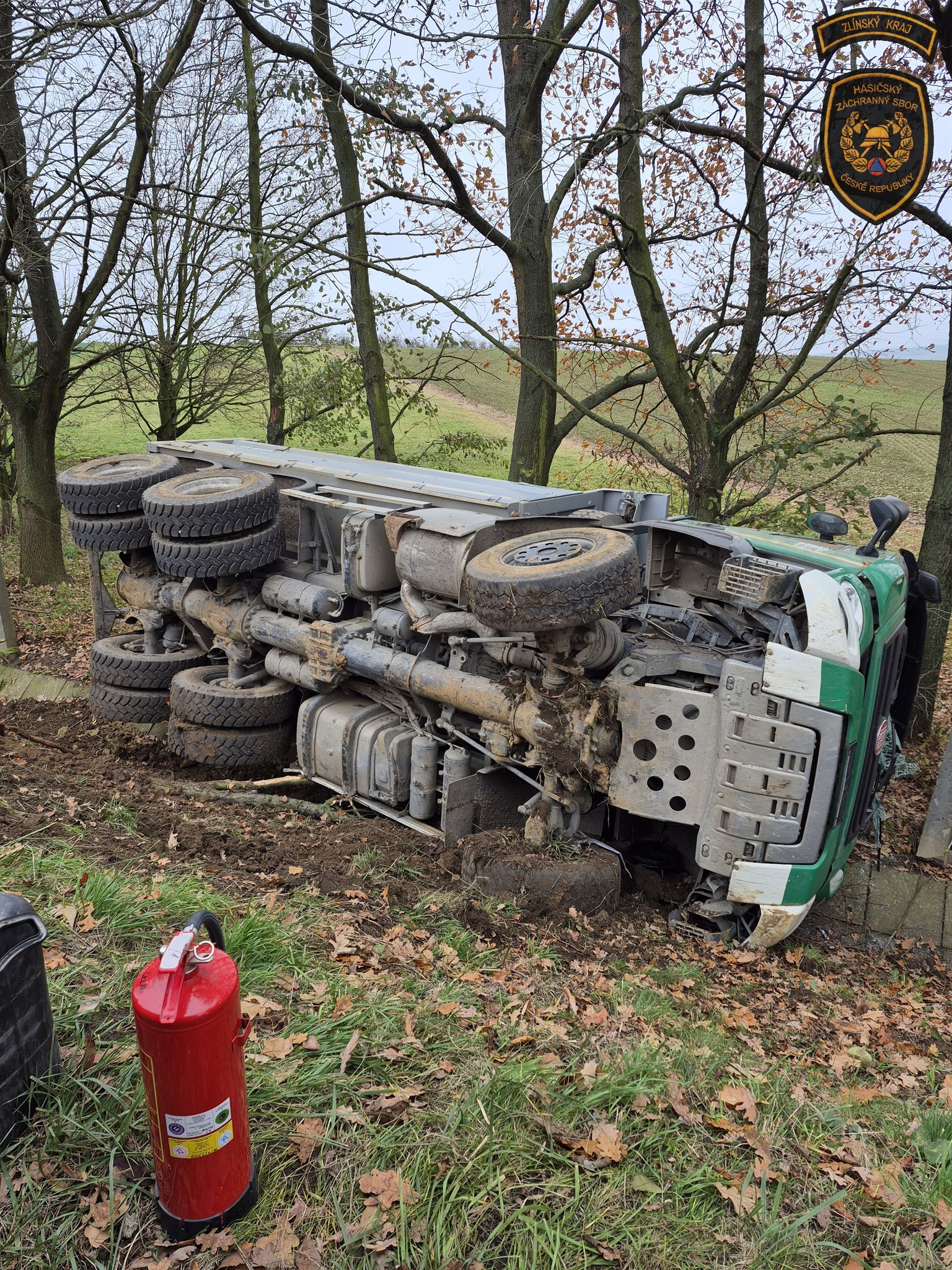 OtrokoviceDvě jednotky hasičů zasahovaly ve čtvrtek v dopoledních hodinách v otrokovické místní části Kvítkovice u havárie nákladního vozidla. Jeho řidič nezvládl řízení a sjel s vozidlem ze silnice, kde se vůz převrátil na bok.