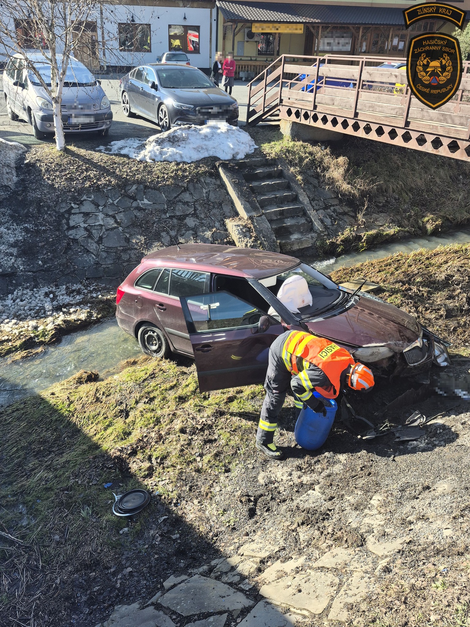 „Jak bylo prvotním průzkumem zjištěno, osobní automobil Škoda Fabia vyjel mimo komunikaci a skončil v korytě potoka,“ sdělil mluvčí Hasičského záchranného sboru Zlínského kraje Pavel Řezníček.