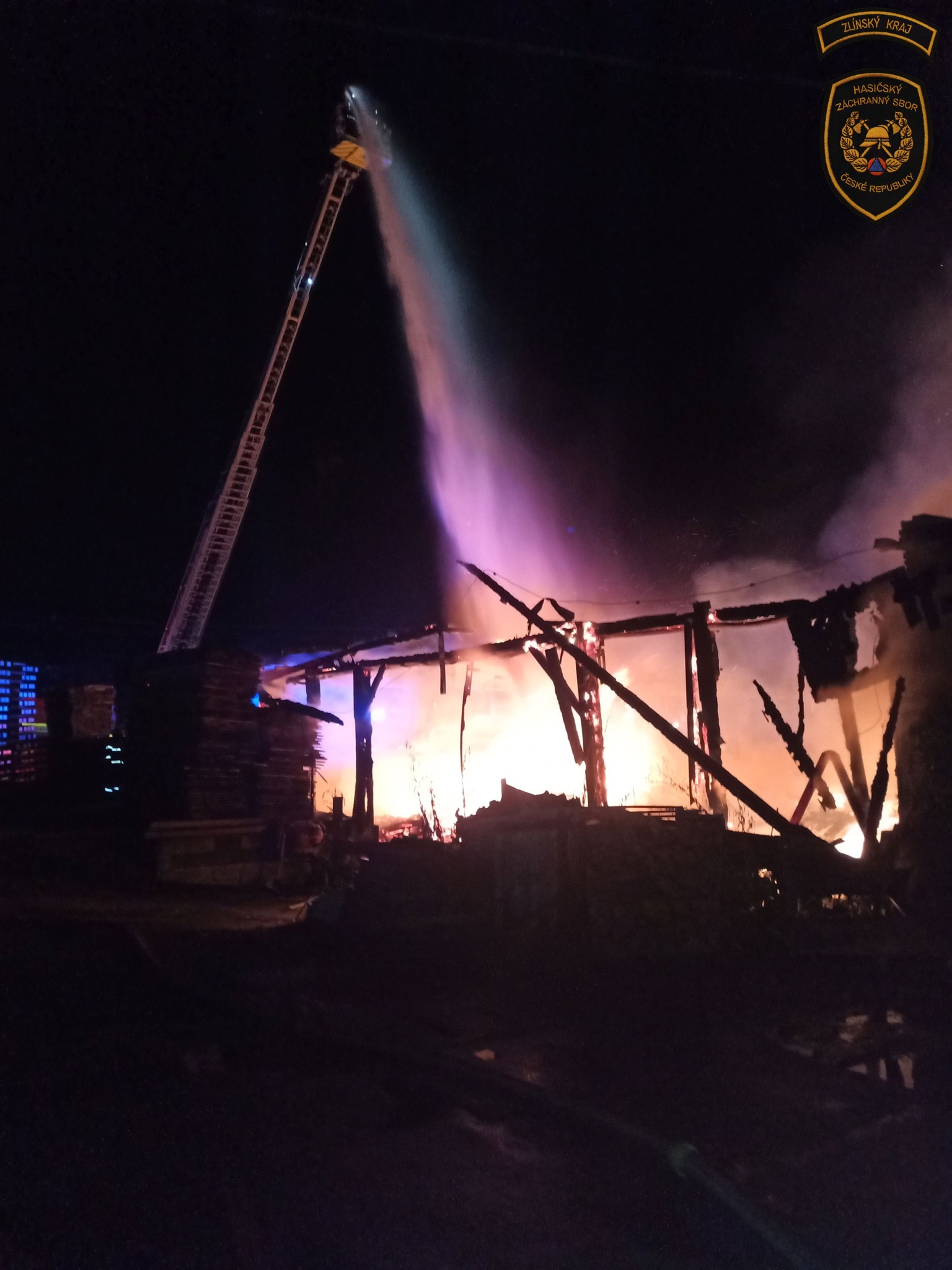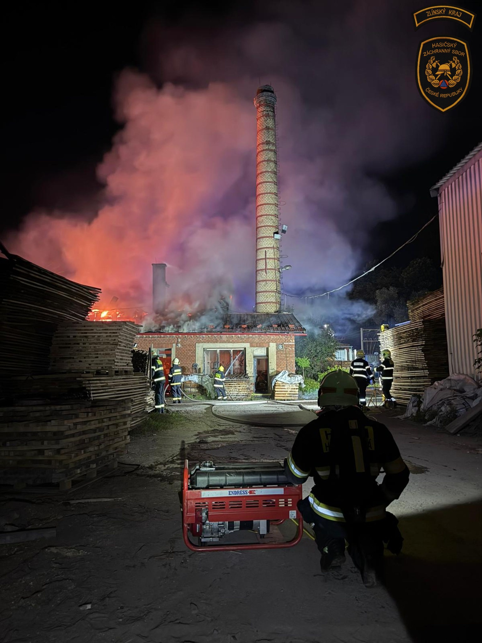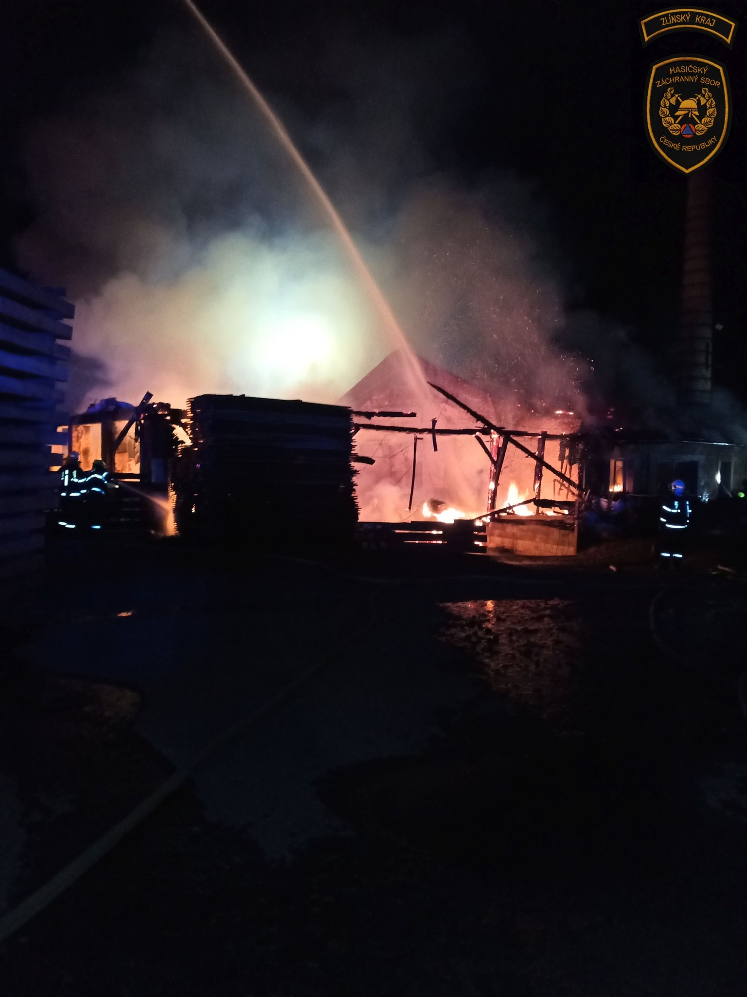 „Hasiči ochlazovali okolní budovy, sušárnu dřeva, ze které se podařilo vyvést ven a uchránit uskladněný materiál. Hasebními proudy obklíčili hořící budovu a prováděli hašení. Jakmile to situace dovolila, využili k hašení a ochlazování prostoru i výškovou techniku,“ informovala mluvčí krajských hasičů Lucie Javoříková.
