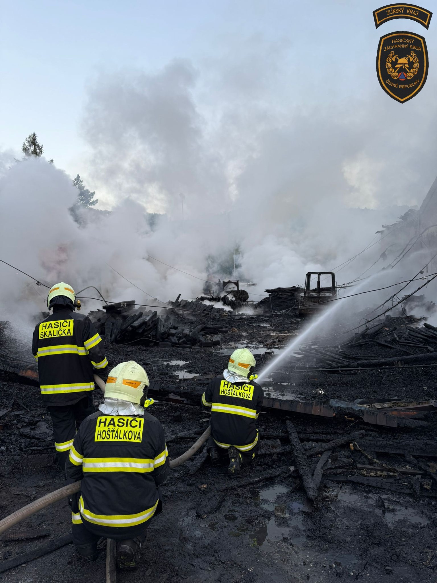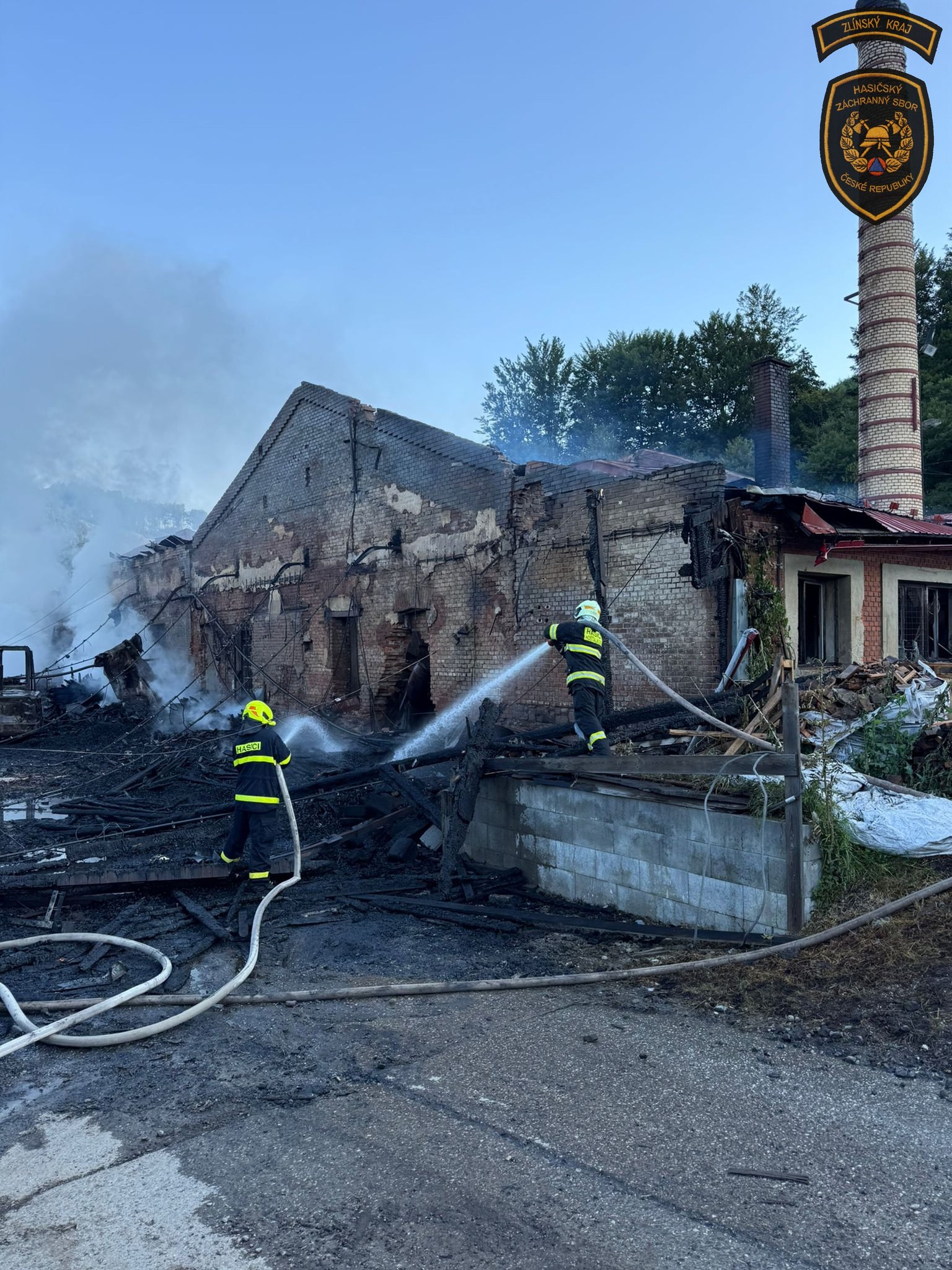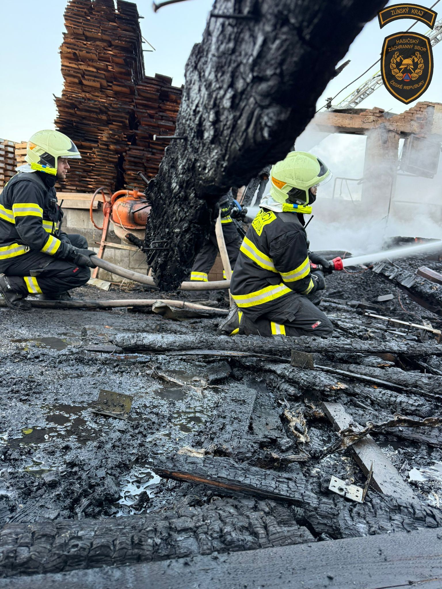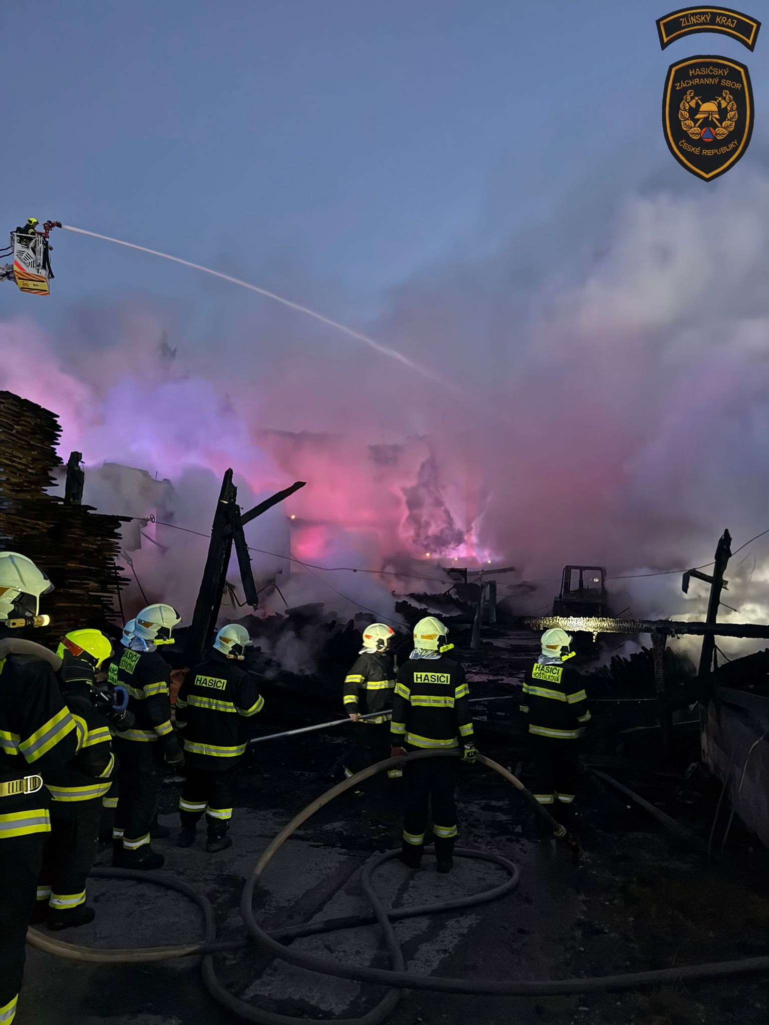 „Hasiči ochlazovali okolní budovy, sušárnu dřeva, ze které se podařilo vyvést ven a uchránit uskladněný materiál. Hasebními proudy obklíčili hořící budovu a prováděli hašení. Jakmile to situace dovolila, využili k hašení a ochlazování prostoru i výškovou techniku,“ informovala mluvčí krajských hasičů Lucie Javoříková.