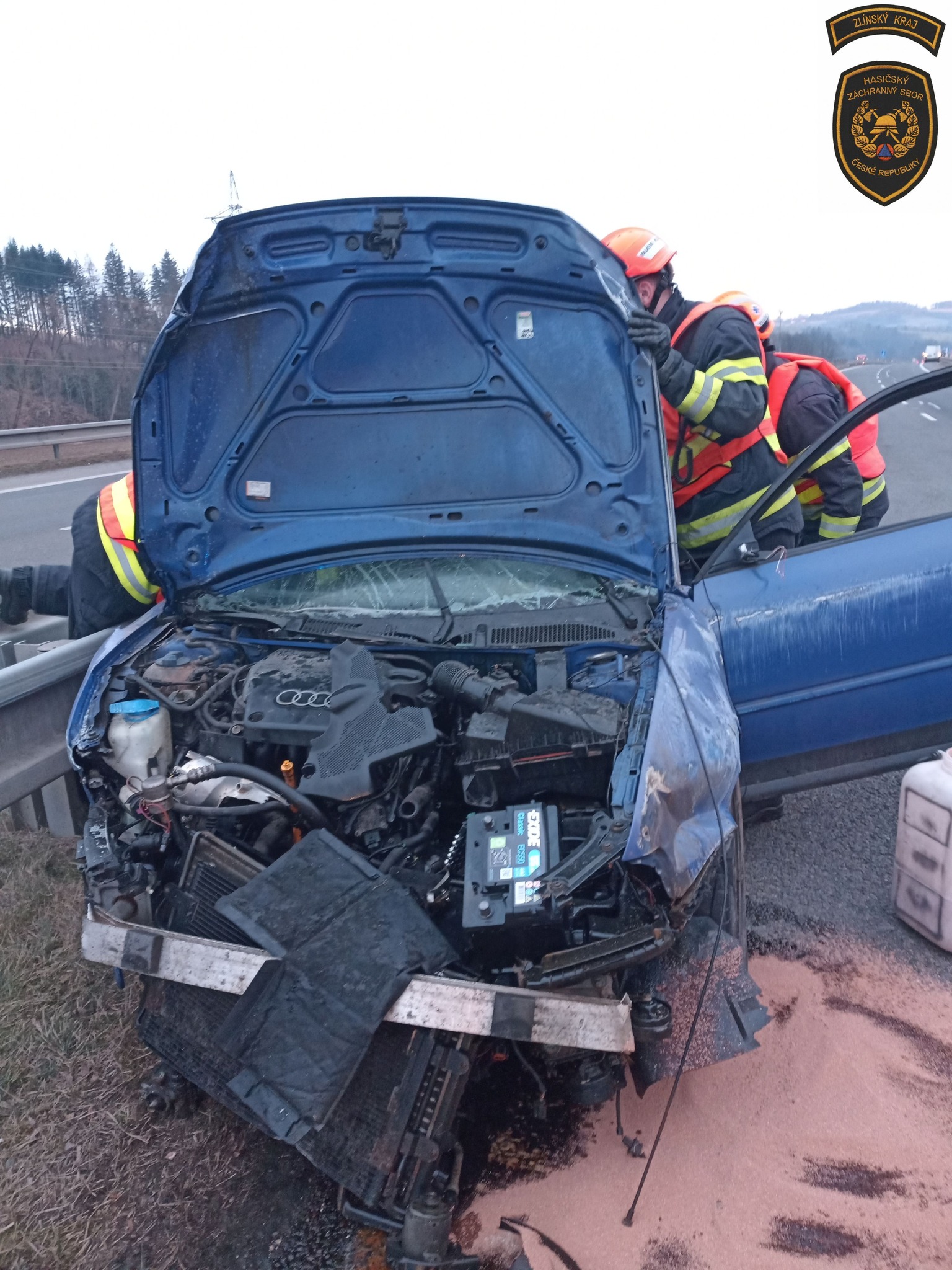 „Hasiči ihned zahájili vyprošťovací práce, při kterých použili hydraulické vyprošťovací zařízení a na páteřové desce vytáhli muže z vozu ven,“ informovala mluvčí krajských hasičů Lucie Javoříková.