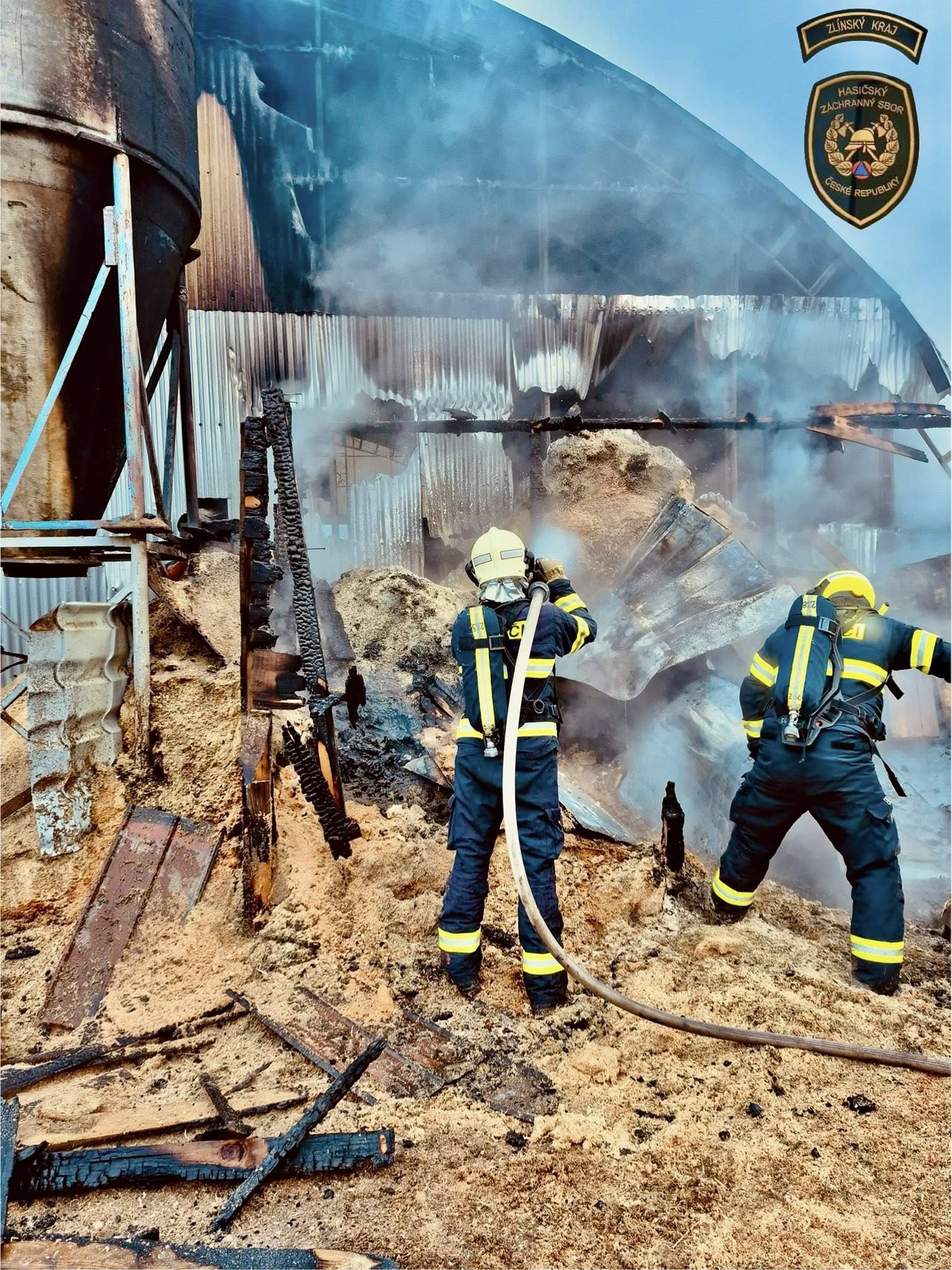 Požár skladu pilin v Roštíně zaměstnal šest jednotek hasičů