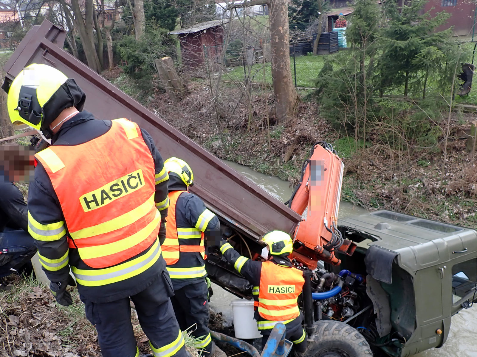 Řidič špatně zabrzdil nákladní automobil, ten skončil v potoce