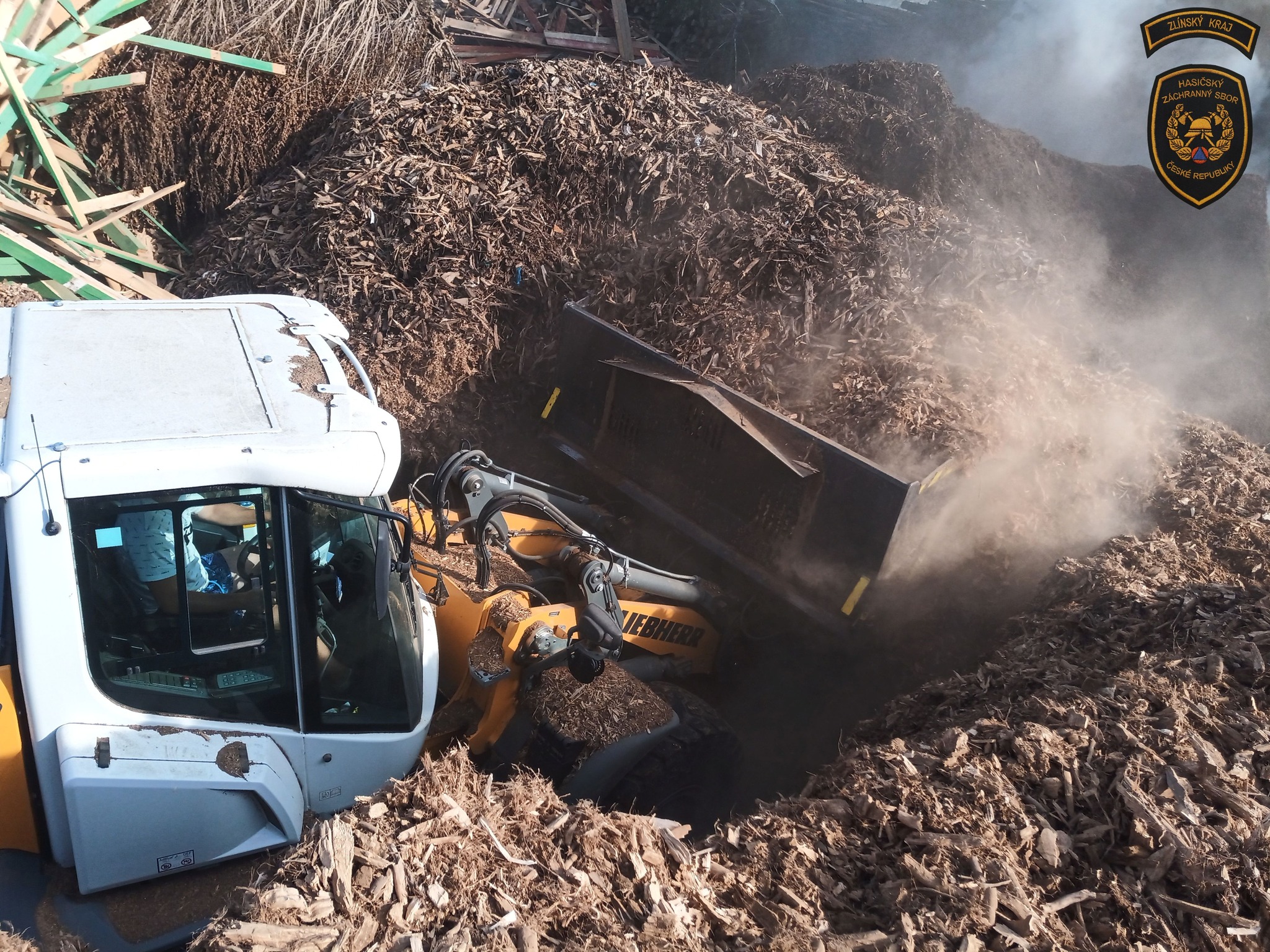 K zásahu se dostavil i územní řídící důstojník, který si převzal velení. S uhašením požáru hasičům pomáhali i zaměstnanci, kteří rozhrnovali nakladačem a další technikou hořící štěpku i dřevo.