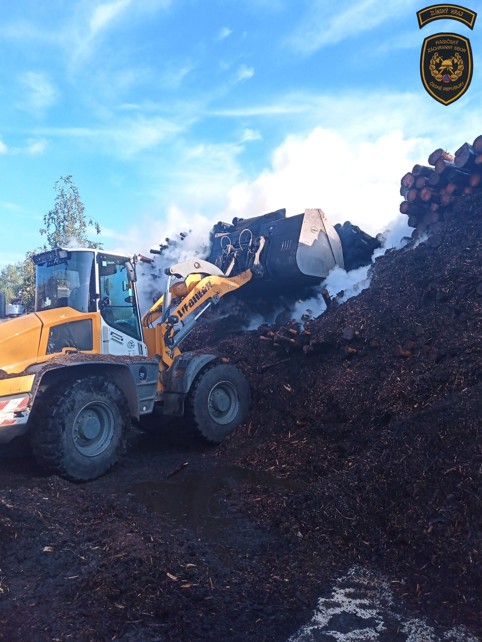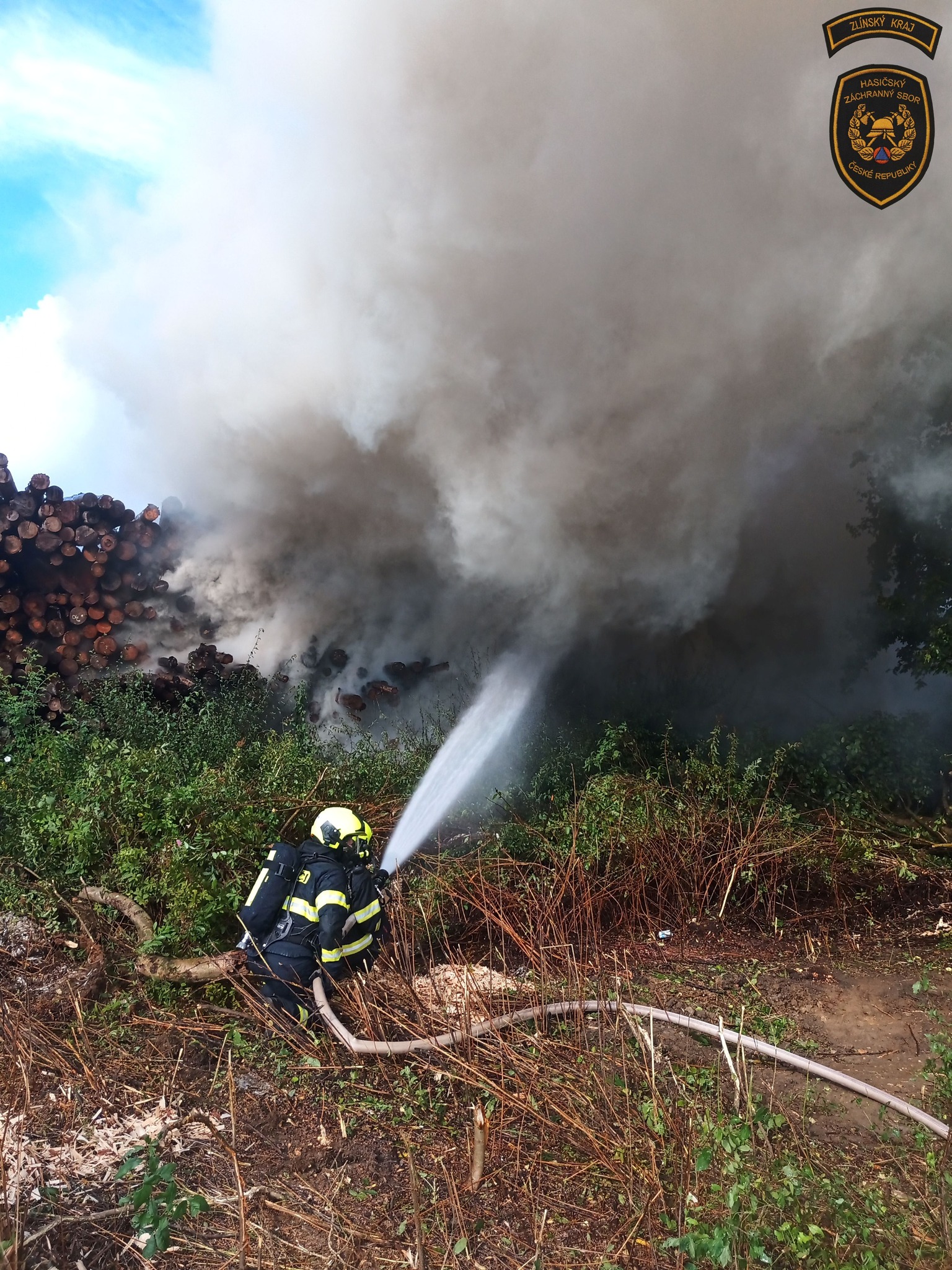 „Po příjezdu na místo hasiči provedli průzkum areálu a ihned nasadili několik hasebních proudů vody. Požárem byla zasažena jak štěpka, tak i hromada kulatiny,“ informovala mluvčí krajských hasičů Lucie Javoříková.
