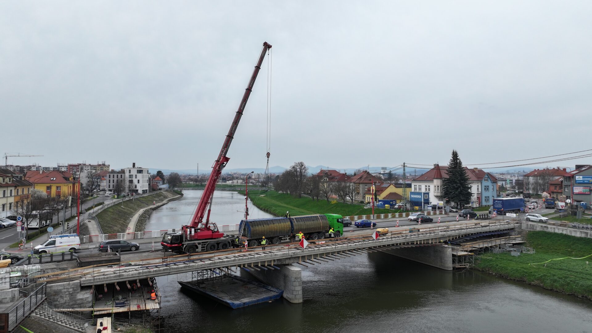 „V současné době máme odbourané římsy a horní povrch nosné konstrukce a montujeme podpěrnou konstrukci pro realizaci římsy. Následovat bude zaměření, betonáž nové spádové desky, izolace, římsy a nakonec nová vozovka. Zároveň jsme už začali pracovat na chodnících ve Starém Městě,“ dodal Kunc.