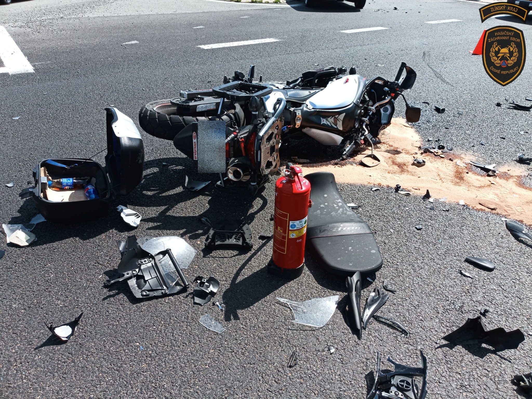 Čtyřicetiletý motorkář utrpěl vážná zranění, se kterými byl převezen do Krajské nemocnice Tomáše Bati ve Zlíně.