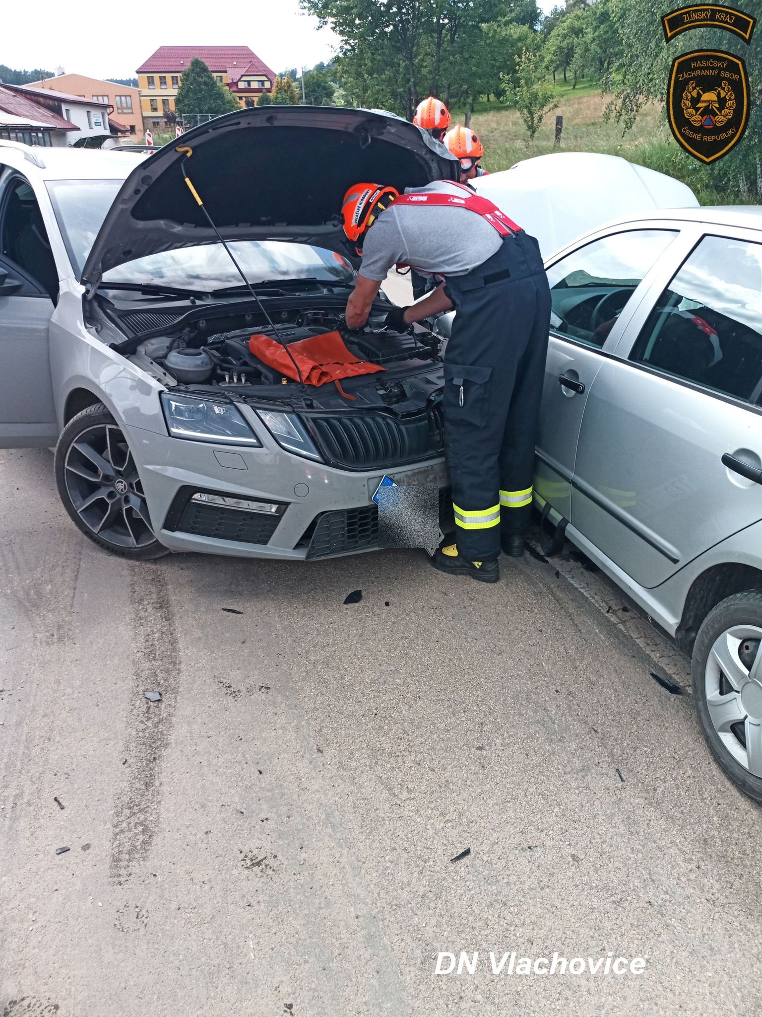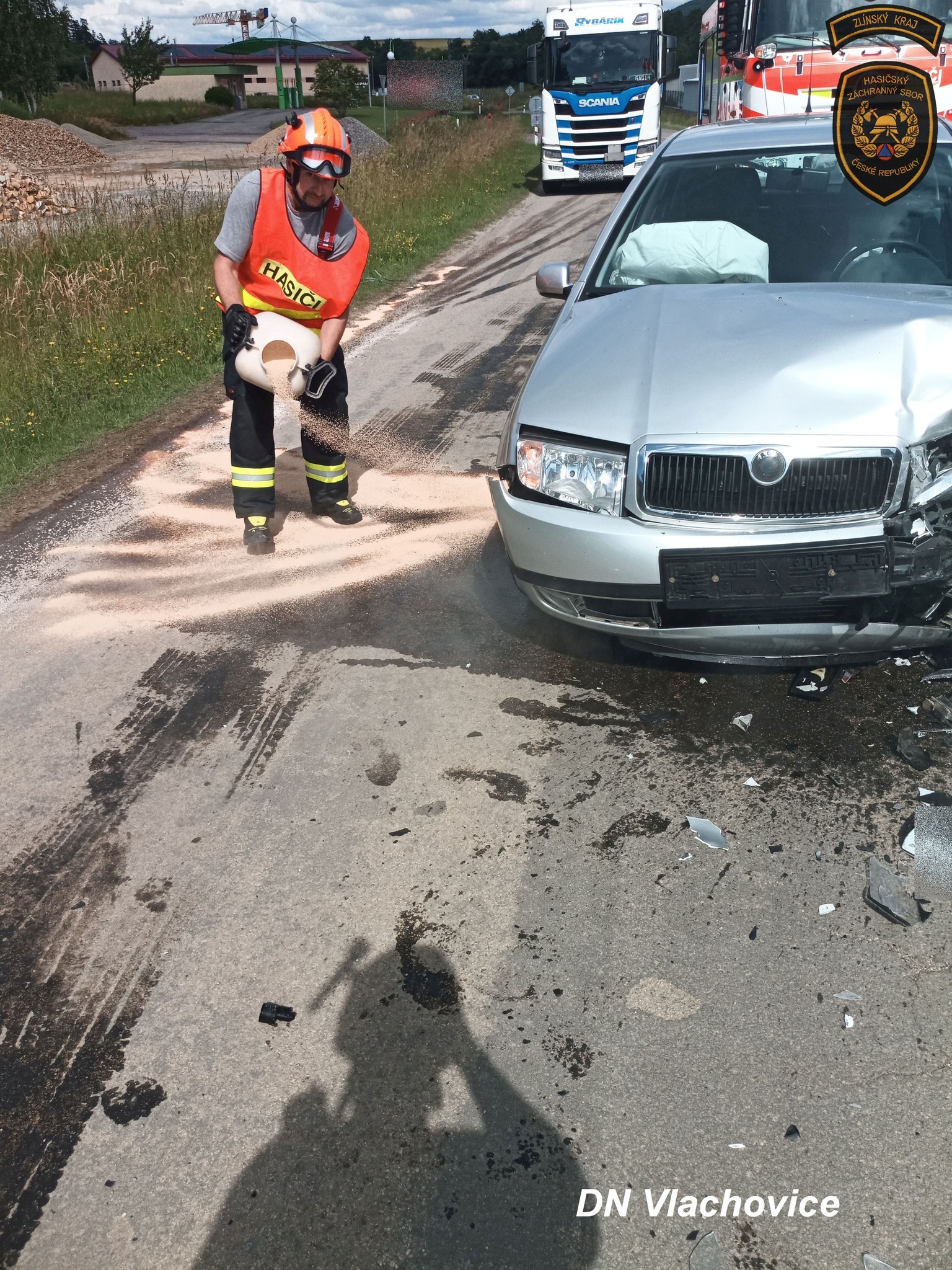 O dvacet minut později došlo ke srážce dvou osobních vozidel ve Vlachovicích.