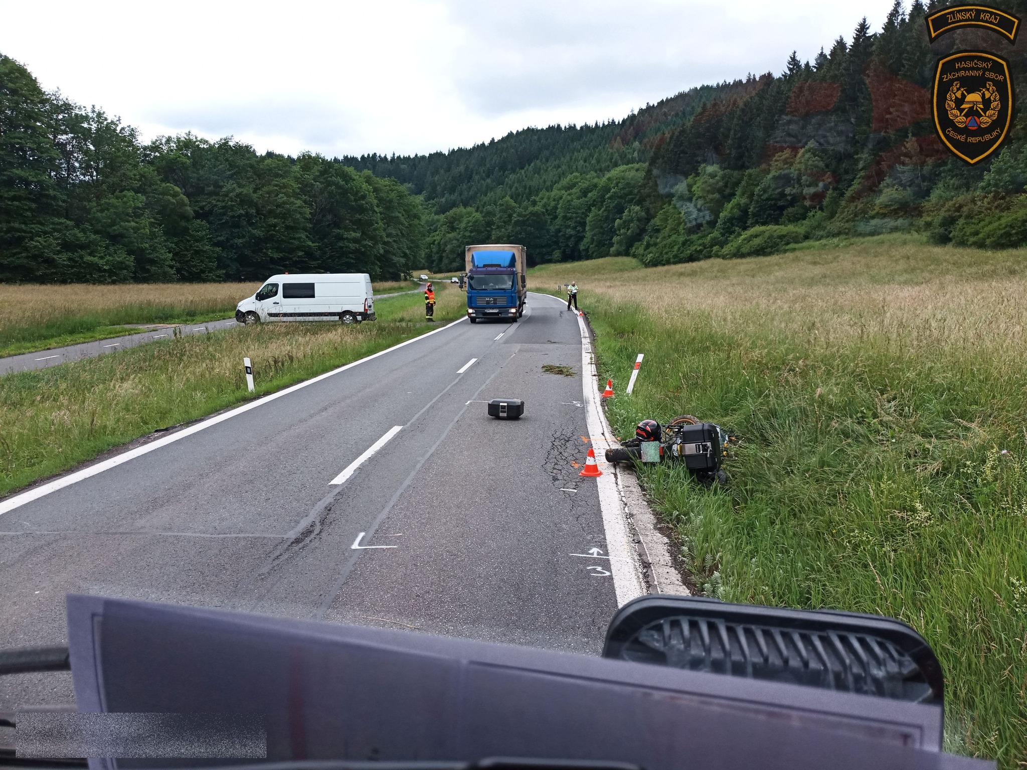 První ze série dopravních nehod se stala v průběhu dopoledne u Valašské Polanky, kde havaroval motorkář.