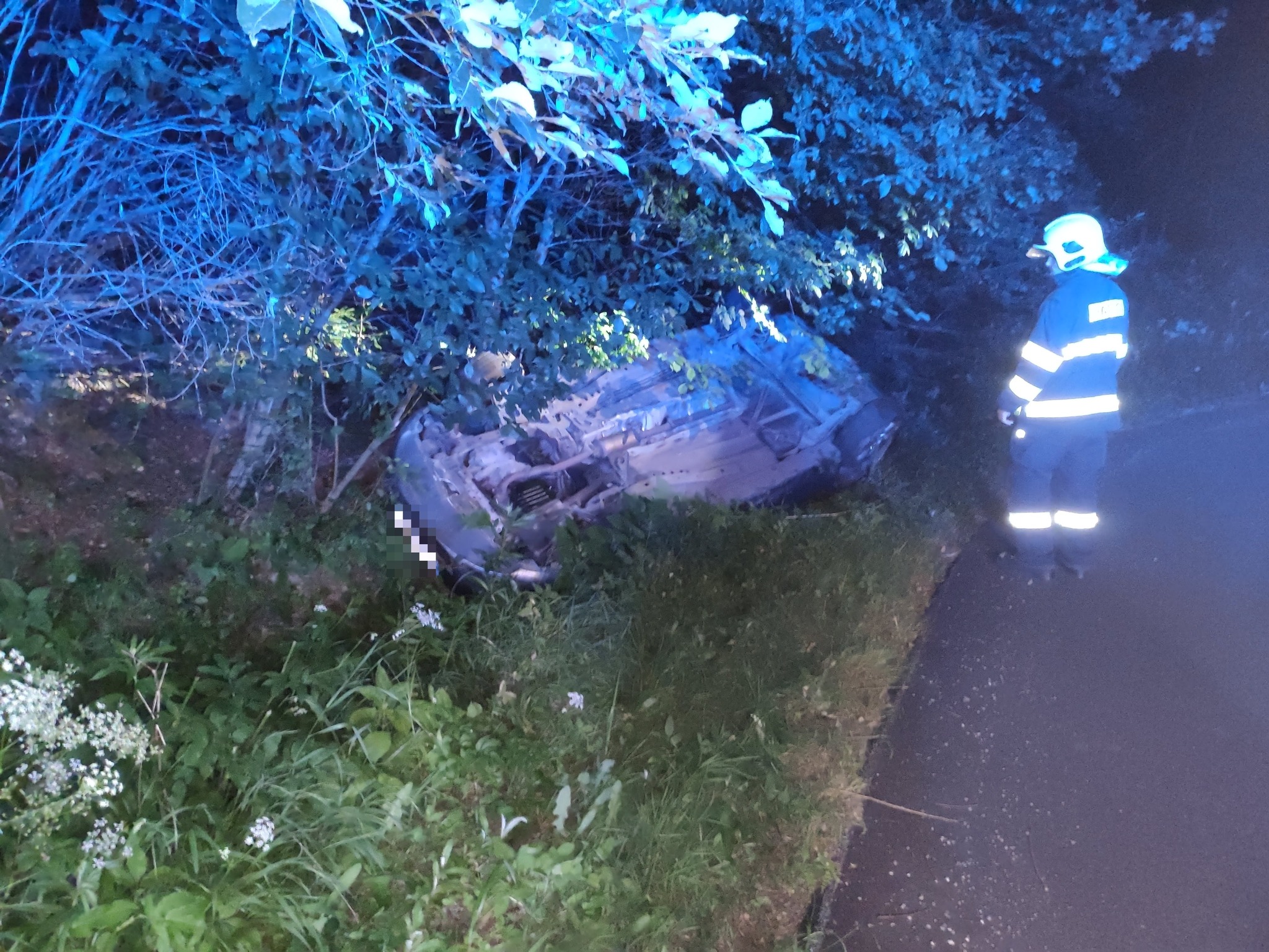 Aby toho nebylo málo, zanedlouho poté havaroval poblíž místa požáru řidič, který v zatáčce sjel se svým autem do příkopu a převrátil se na střechu.