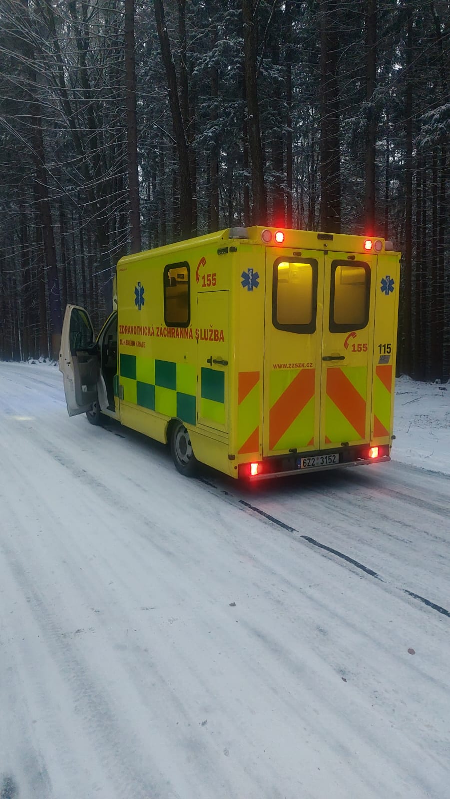 Kvůli zledovatělému povrchu silnice byl zásah mimořádně náročný zejména pro řidiče záchranné služby.