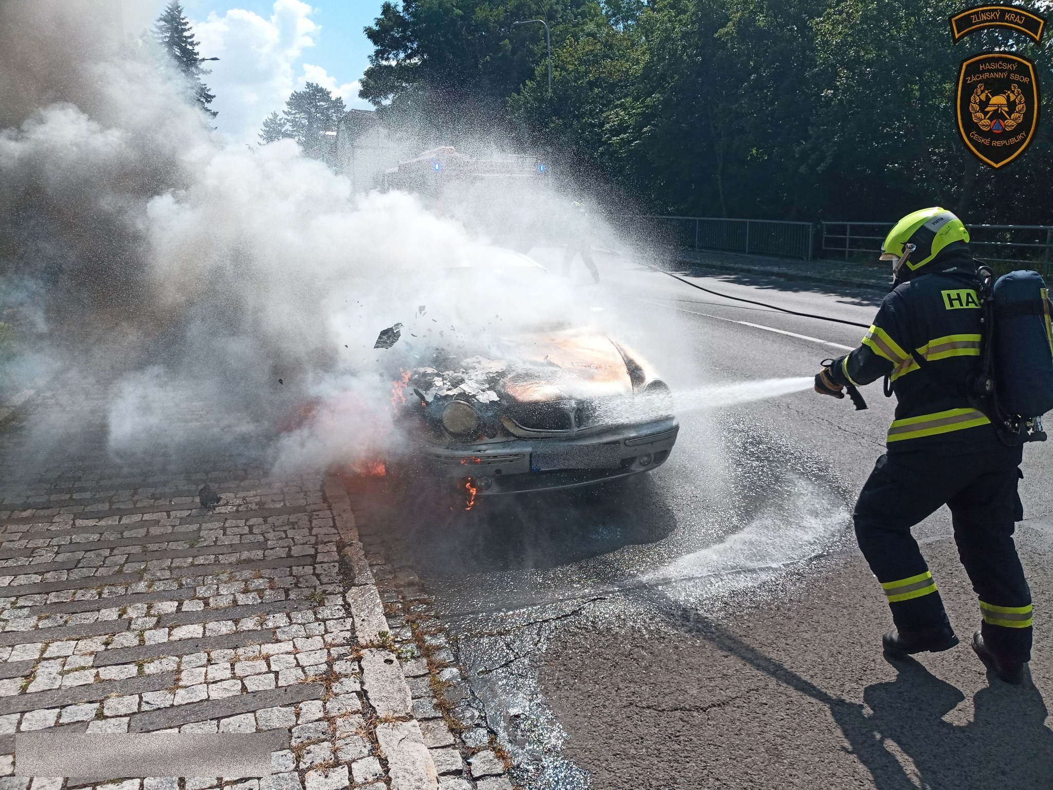 Hasiči byli nejdříve vysláni do Vsetína na ulici Palackého, kde hořelo osobní vozidlo.