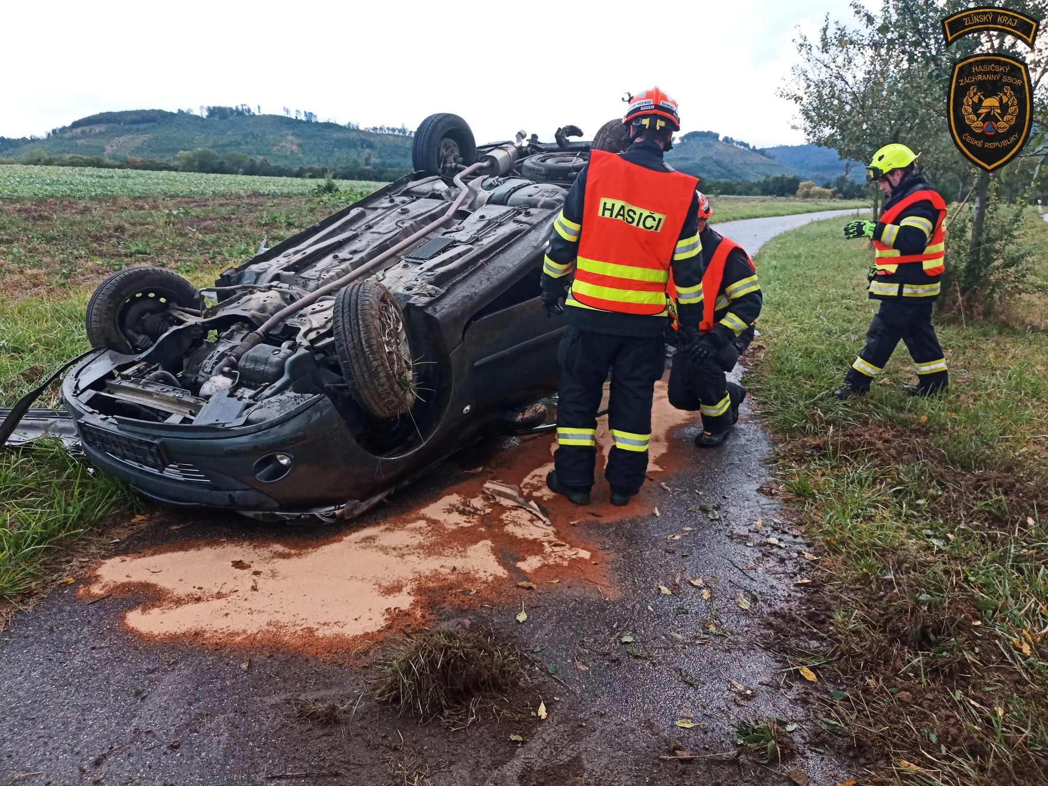 „U vozidla došlo k úniku většího množství provozních kapalin. Ty hasiči zasypali sorbentem. Jakmile to situace dovolila, převrátili auto zpět na kola, odpojili u něj autobaterii a zamezili dalšímu úniku pohonných hmot,“ dodala Javoříková.