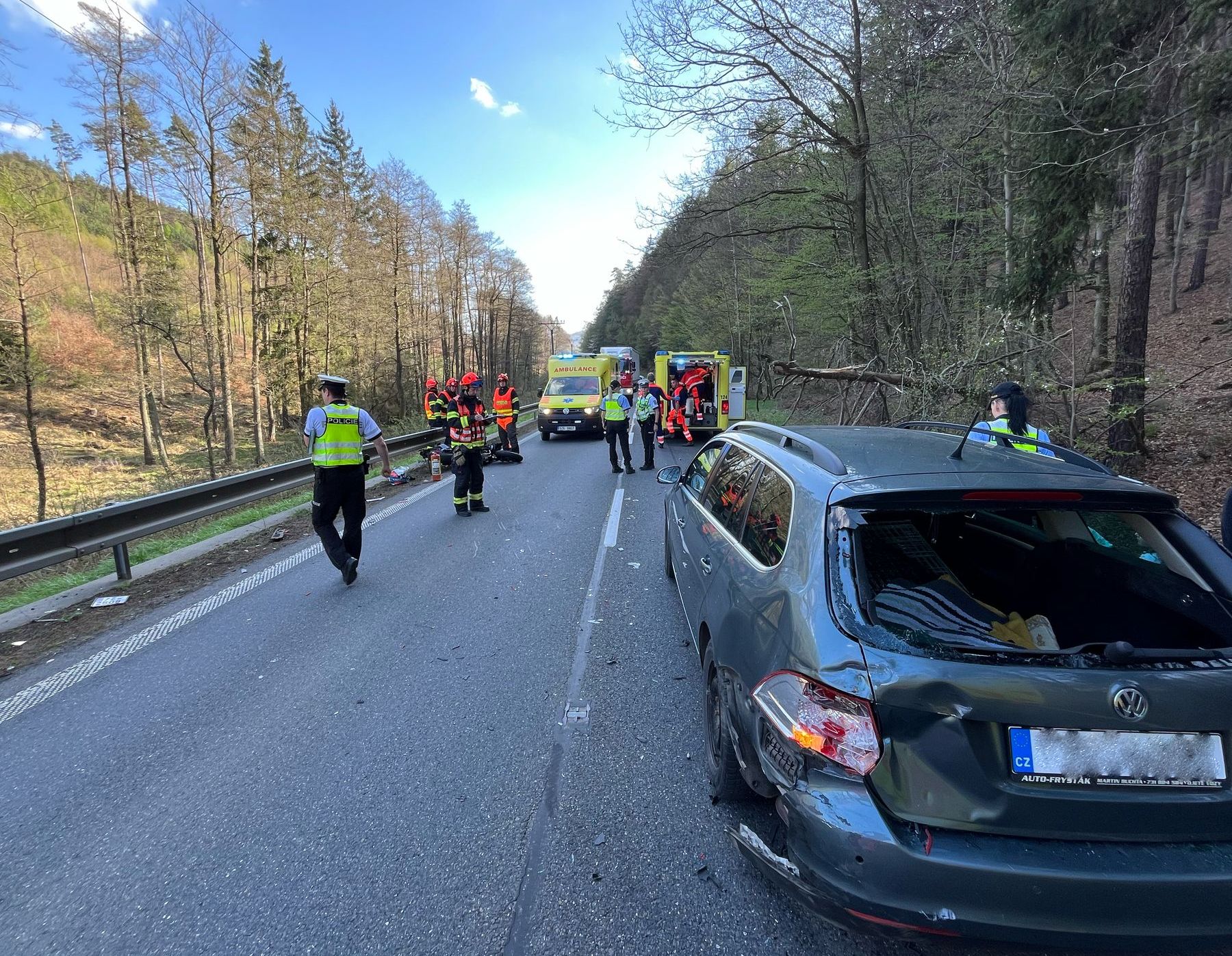 Například u srážky motorkáře s osobním vozidlem, ke které došlo mezi Horní Lhotou a Zádveřicemi, musely zasahovat hned tři záchranářské posádky.