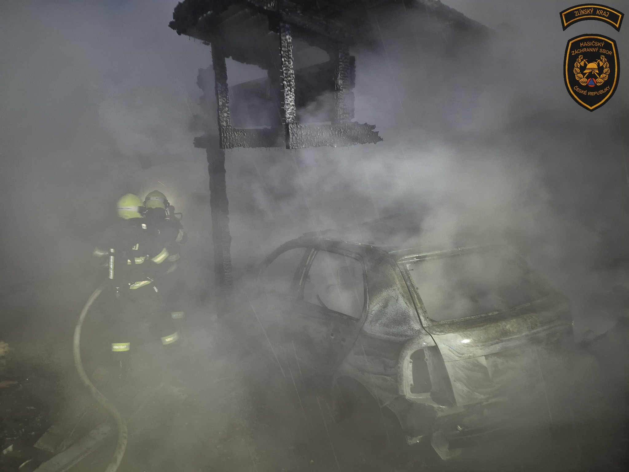 Ranní požár v Zašové napáchal škodu za více než milion korun. Zničena je kůlna s přístřeškem i zaparkované auto