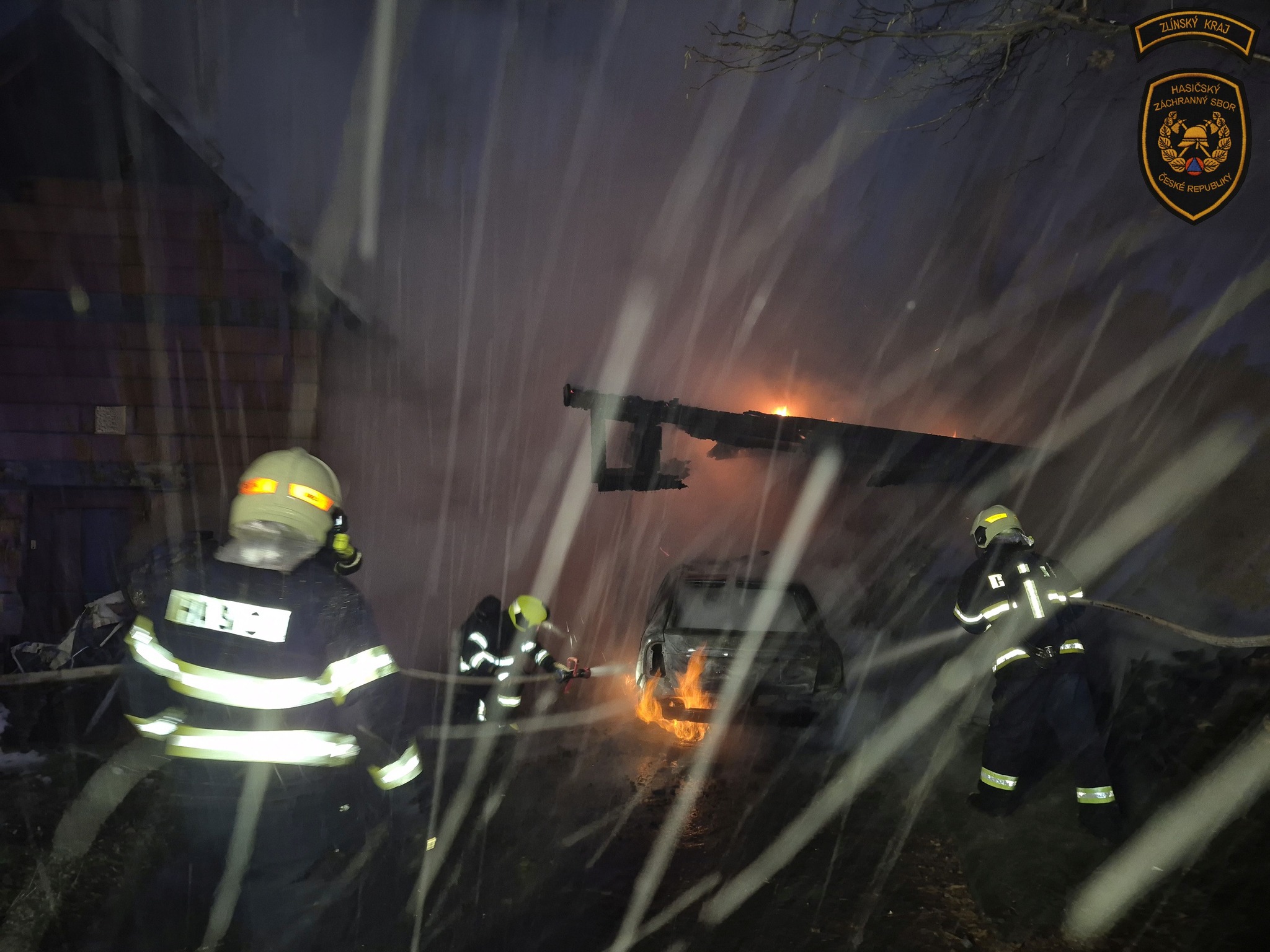 „Po příjezdu prvních jednotek byla dřevěná kůlna s přístřeškem na automobil zcela zasažena plameny,“ sdělila mluvčí krajských hasičů Lucie Javoříková.