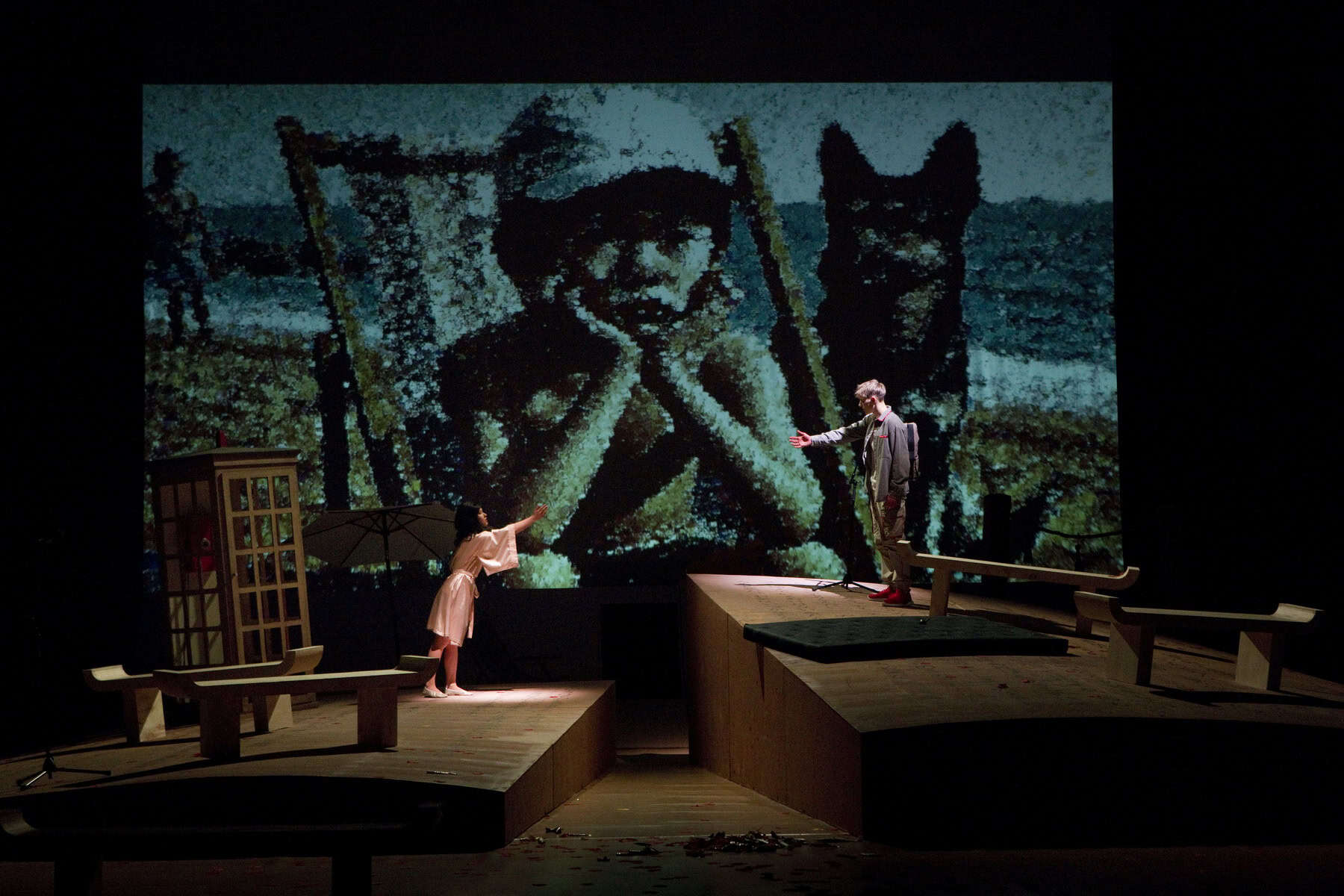 „Oba pracují s japonskými prvky a artefakty. Současně však zasazují dílo do evropského, respektive světového kontextu, jak je ostatně vlastní i samotnému autorovi předlohy. Zprostředkovat divákovi magický svět knihy, mapující příběh dvou cest plných rozmanitých zastávek, se daří i díky sevřenému jevištnímu prostoru, dynamické režii a také použití videoprojekce,“ uvádí zlínské divadlo.