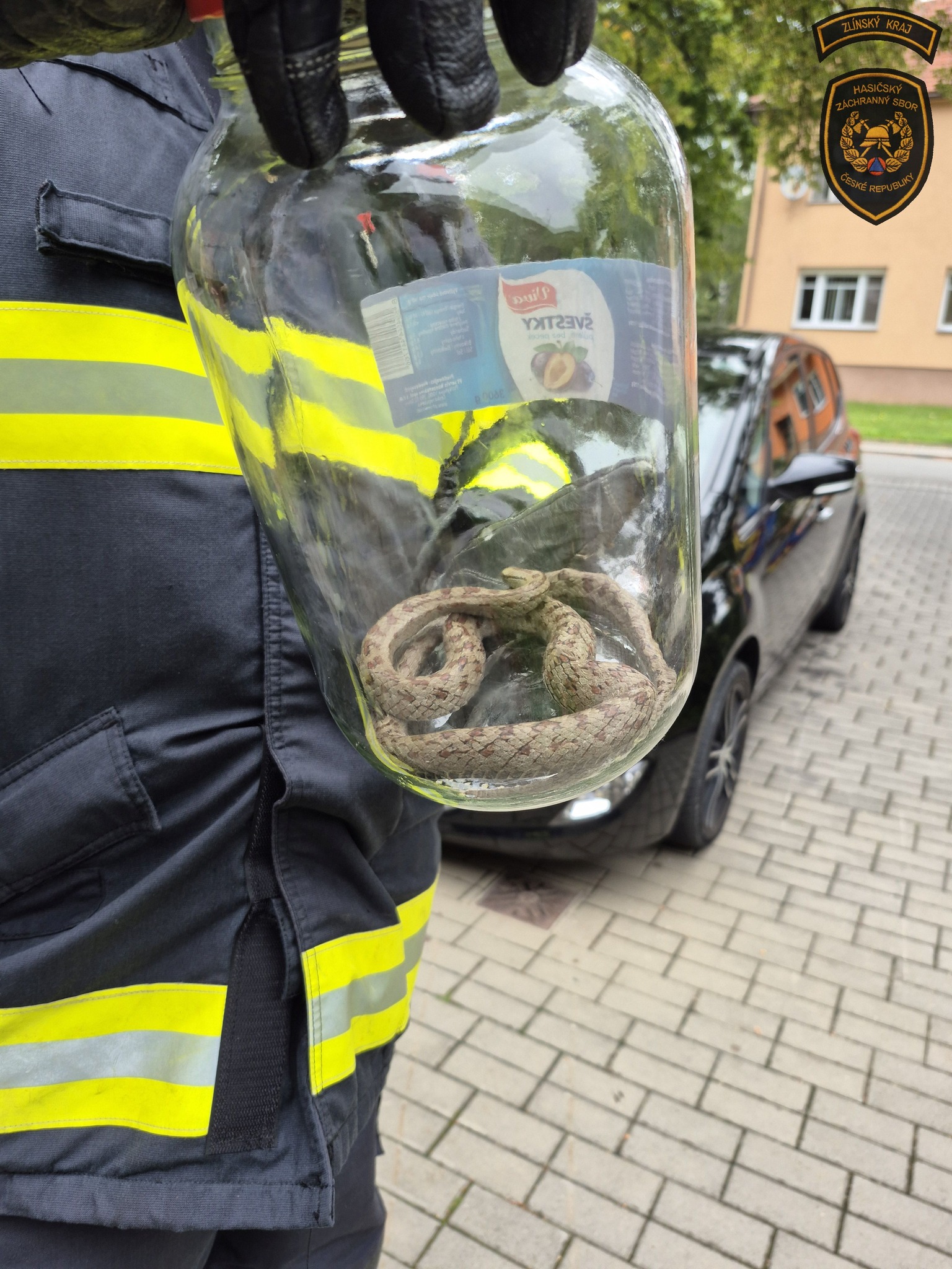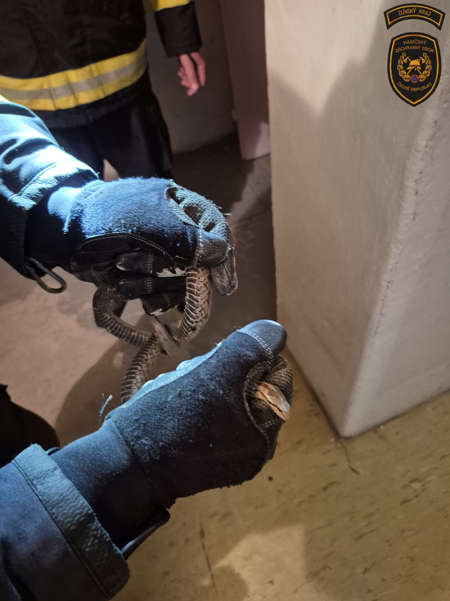 „Proto na pomoc byli vysláni místní profesionální hasiči, kteří hada odchytli a odvezli do lesa, kde ho vypustili zpět do volné přírody,“ informovala mluvčí hasičů Lucie Javoříková.