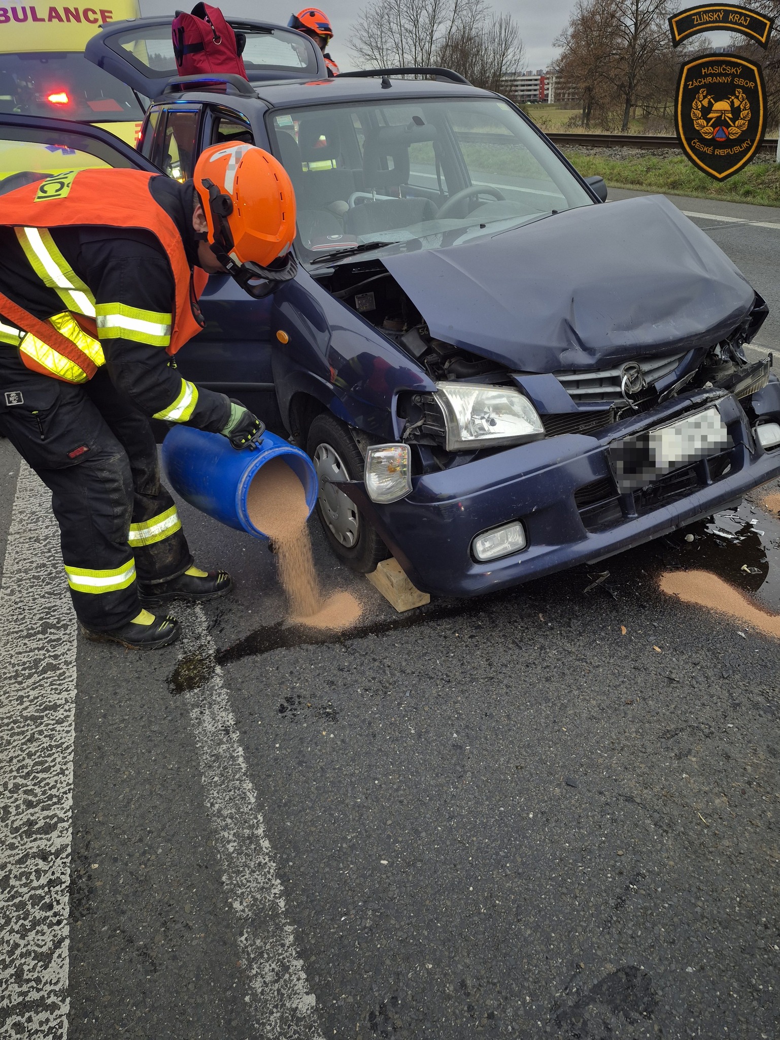 Nehoda se stala ve směru na Vizovice poblíž čerpací stanice. Na místo byly vyslány dva cisternové vozy profesionálních hasičů ze stanice Zlín.